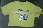 Pre-owned and washed, with no damages, holes, rips, or stains. The tag says size medium, 60% Cotton and 40% Polyester, machine wash cold and tumble dry. This tee shirt is a CROP TOP, measurements are as follows, and are APPROXIMATE and are done to the best of my ability. Length- 18" Chest- 18.5" Shoulders- 18.5" Pictures show all details, and angles as well as the tag and a tape measure for size reference. You receive the same shirt shown. Ships quickly by the next business day.