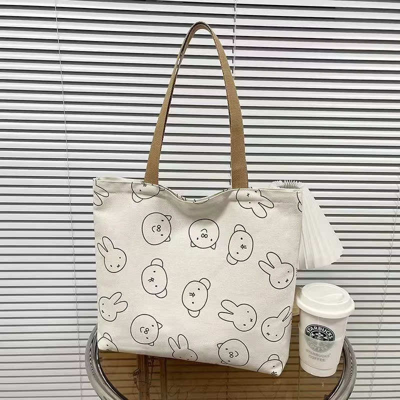 Cute Peanuts Snoopy print canvas tote bag with Harajuku-inspired design. Features a large capacity and sturdy handles, perfect for shopping, daily use, or as a stylish portable handbag for women. Choose your preference.