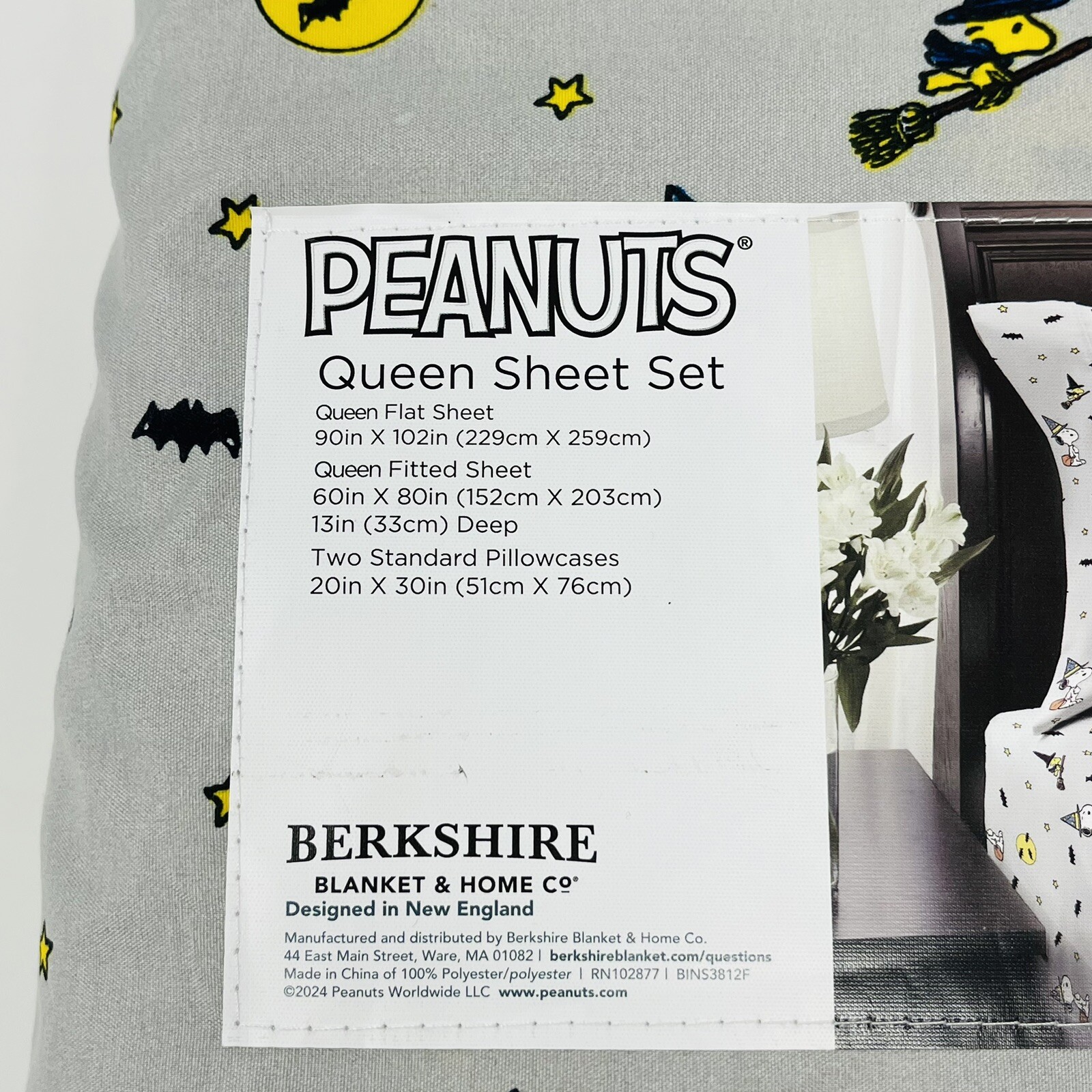 PEANUTS Snoopy QUEEN SHEETS SET Woodstock Halloween Witch On Broom Bats Moon NEW