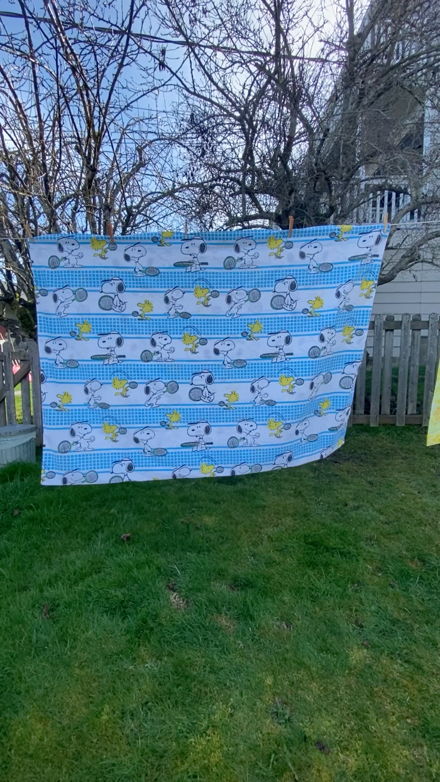 70s Vintage JP Stevens Tastemaker .. Peanuts Snoopy & Woodstock play Tennis! Twin Size Flat Sheet Good pre-owned condition. No holes. Does have some light spots (see photos) no smoking no cats Fast shipping