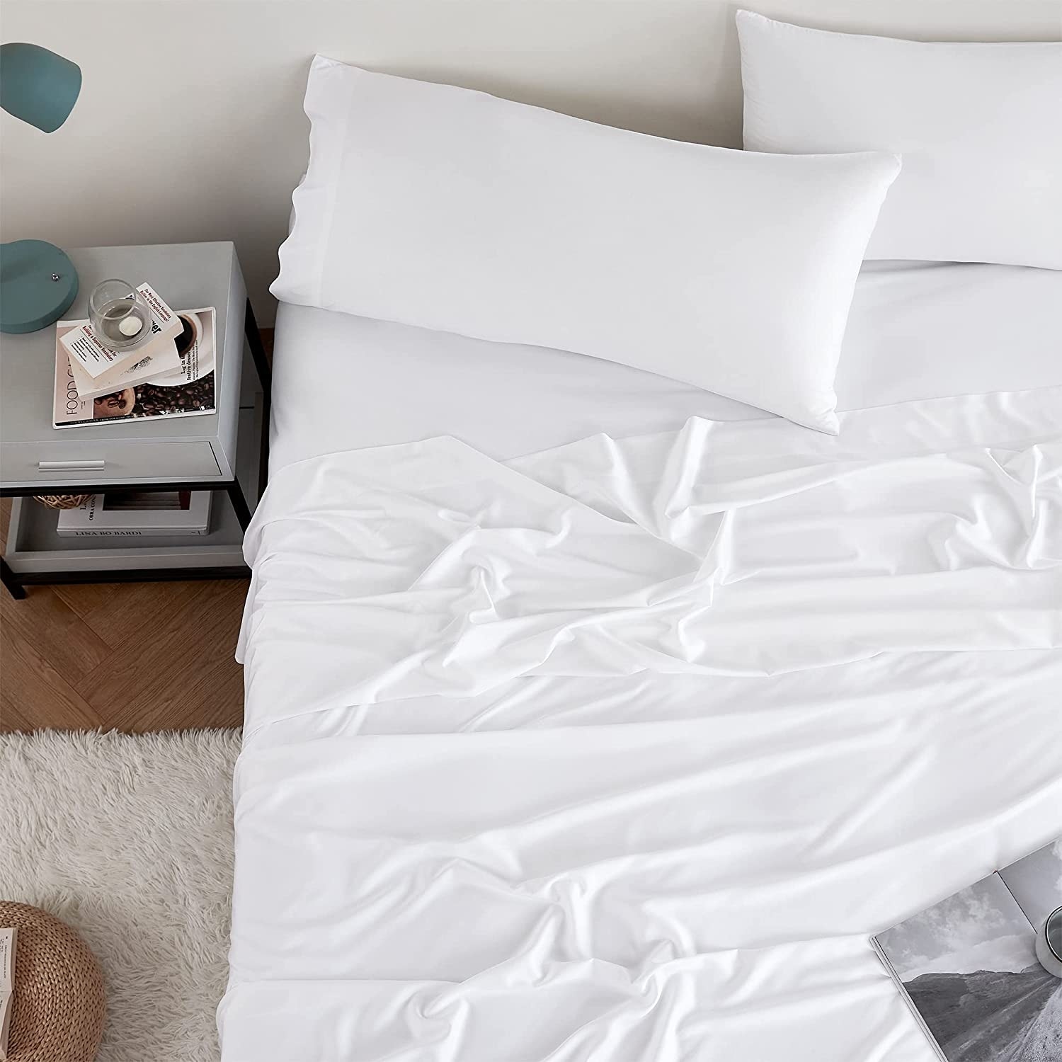 $ 32.11Luxurious King Size Bamboo Bed Sheet Set - Cooling Breathable 4-Piece White