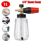 Features 【 BIG MOUTH FOAM CANNON 】: Our car soap foam gun simplifies the process of washing your car by producing a thick and luxurious foam. Its easy-to-pour bottle design ensures that you won't waste any soap liquid. 【 ADJUSTABLE NOZZLE UPGRADE DESIGN 】: To achieve the thickest foam mixture, simply turn the top knob in a right (-) direction. This knob controls both the amount of water used and the overall thickness of the foam. Due to the foam gun's design, you'll be able to produce a thick, high-quality foam that is perfect for washing your car or other vehicles. 【 HIGH QUALITY 】: The adjustable nozzle is constructed with a heavy-duty brass core and stainless steel, which improves the sealing of the joint effectively. our car wash foam gun can handle a maximum working pressure of3800 PSI. The knob can be adjusted to achieve the desired foam level, and the adjustable nozzle can be modified to change the spray width and angle as necessary. 【 EASY TO USE 】: This snow foam cannon is very easy to use. It comes with 1/4 inch quick connect accessories and an upgraded filter block design that provides maximum protection against damage from foam or water particles while being used. The 1/4 quick coupling allows the cannon to be securely attached to your pressure washer gun. Additionally, the adjustable foam concentration and spray angle help to improve the foam coverage and cleaning effectiveness. 【 MULTIPLE USE PRESSURE WASHER FOAM CANNON 】: Our foam sprayer is compatible with most pressure washers and can be used for a variety of applications, including washing cars, bikes, motorcycles, floors, windows, driveways, roofs, and siding. It's great for removing dust and dirt from your vehicle, including even the smallest cracks and crevices. Package includes: 1x Soap Foam Cannons