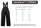 SnowStoppers - Kids Ski Bibs / SnowPants ~ Black NOW with Triple the insulation for extra warmth! Waterproof Breathable Reinforced Knee Shell - 100% Heavy Knit Polyester Machine Wash Cold Get ready to have some fun in the Snow! Sizes Available: Toddlers: 2T, 3T, 4T, Preschool Kids: Small (5), Medium (6), Large (7) Junior Kids: Small (8), Medium (9), Large (10), Extra Large (12) These sturdy, breathable, well insulated Ski Bib / Snowpants for Kids have adjustable suspenders with quick release plastic clasps. The zip front makes it easy to get them on and off. Zip close Pocket on the right back. Rib Knit elastic at the waist for added ease of movement. Straight leg bottom hem with elasticized snow gaiter underneath so you can tuck them in your boots keeping snow and cold out. Important shipping information for customers outside the USA. For our customers in CANADA we offer 2 shipping choices. STANDARD Shipping at very low rates using USPS First Class Mail International, or EXPEDITED Shipping at a higher rate using USPS Priority Mail International. STANDARD shipping with First Class Mail is inexpensive, but the delivery times vary greatly to the different regions of Canada and are slower in the winter and during the holiday seasons. We ship from the Eastern US so packages reach Eastern Provinces more quickly than the Western Provinces. We have seen that delivery can take anywhere from 5 business days to 3 weeks depending on the region of Canada and the time of year. For example: If you live in a highly populated area near a major city in the Province of Quebec or Ontario then the delivery time will be closer to 5 days and if you live in a very remote region of Saskatchewan or Manitoba far from any major city hen the delivery time will probably be more like 2 to 3 weeks. Therefore, no specific promise for time of delivery can be given when choosing Standard Shipping. EXPEDITED shipping with Priority Mail costs a bit more but is significantly faster and there is better tracking information available. Packages are usually delivered within 5 to 10 days with the more populated regions near cities getting faster service than the more remote regions. For our INTERNATIONAL customers, (except Canada), we only ship using USPS Priority Mail International. Priority Mail costs a bit more than First Class mail but less than most other package carriers. Tracking information is available and most packages are usually delivered within 7 to 10 days depending on the speed of the delivery service within your country. The more populated regions near cities get faster service than the more remote regions. * * * Please leave us Positive Feedback and we will do the same for you. Our goal is 100% customer satisfaction. If you are unhappy with your purchase for any reason, we offer you the choice of an exchange or a full refund. Return shipping costs must be provided by you! We do not pay for return shipping. Please let us know and we will do everything we can to take care of the problem.