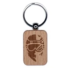Snowboarder Helmet and Goggles with Bandana Engraved Wood Rectangle Keychain