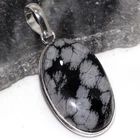 Snowflake Obsidian 925 Silver Plated Gemstone Pendant 2" Limited Gift JW