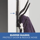 Create hanging storage for towels, robes and more with the SnugFit 3-Hook over-the-Door Rack. With its exclusive patented SnugFit technology, this organizer installs securely and with no tools over any interior door. It features three double hooks (six hooks total). The over-the-door hook rack includes scratch-resistant spacers and quiet-close bumper guards. Use the portable hook rack in your bathroom, closet or anywhere else extra storage is needed. It features an attractive oil rubbed bronze finish. Over-the-door hook rack creates valuable hanging storage for towels, bathrobes and more Requires no tools and causes no damage to your door Innovative double hook design (6 hooks total) Built-in bumper guards protect door from scratches and reduce noise Features patented SnugFit technology with removable spacers for an easy to install and secure fit on any standard door