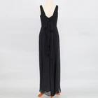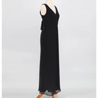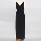 Social Bridesmaids Black V-Neck Back Tie Chiffon Trumpet Gown Size US 8R New with tags MRSP $221 Smooth, sophisticated symmetry shapes the front of this chiffon gown Back view brings flow and sweep to the look with a drapey back tie. Hidden back-zip closure Ties at back V-neck Sleeveless Floor-length trumpet skirt Lined 100% polyester Dry clean Length 59" Armpit to armpit 18.5"