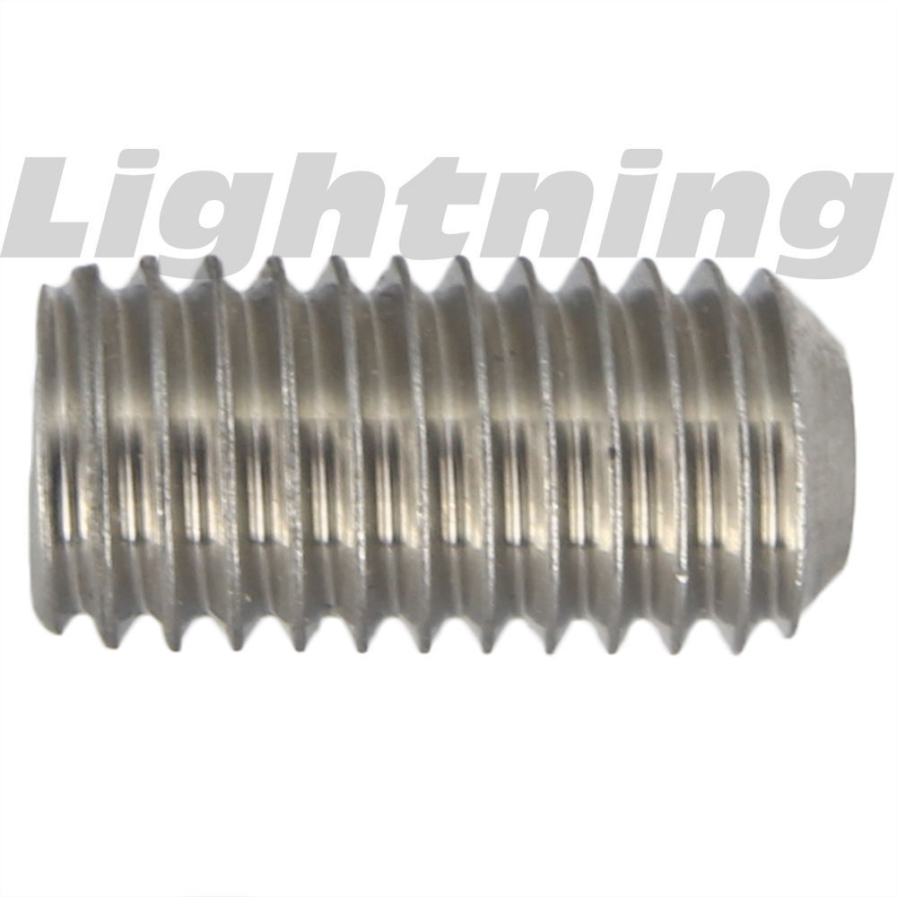 Socket Set Screws Stainless Steel 1/2-13 x 2" Qty 250 Socket Cap Screws are reliable and durable and are used in many applications. They are available in a variety of head styles and materials. With a high cylindrical head, socket cap head fasteners have a recessed driving area and offer high hold power at high torque levels. Hex socket drive systems are driven by hex wrenches or power tools with hexagonal bits. A threaded fastener's size name includes information about the major external diameter, followed by the threads per inch, which indicates if it is coarse or fine. Coarse threads are better when working with brittle materials; they are sturdier and are easier to thread and unthread compared to fine. Coarse threading also allows for thicker coatings and platings How To Measure Length: CounterSink Head Fasteners : Measured From Top OF Head To Point Socket Cap Head Fasteners : Measured From Underneath The Head General Product Information Head Style : Head Less Head Diameter : 1/2" (0.500") Length : 2" Quantity of Fasteners in Package : 250 Material : 18-8 Stainless Steel Shipping: All orders placed before 3:30 pm EST Will Ship Same Day Tracking is provided on ALL Orders Priority Mail Shipping service is offered at a discount of only $3.95 UPS Ground UPS Next Day Air is available, Please inquire for pricing Returns : ALL returns are accepted if returned within 60 days. Money Back or exchange guaranteed. NO Restocking Fees. For YOU, we constantly strive to find ways to improve our performance.