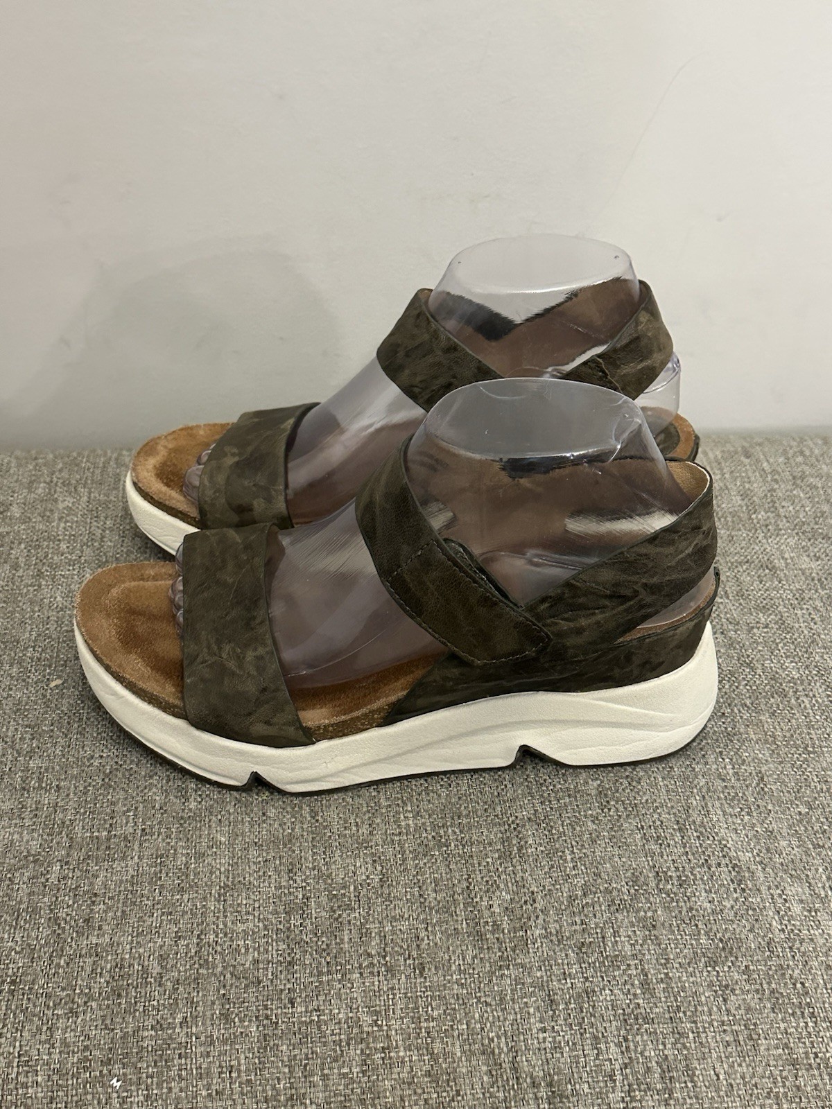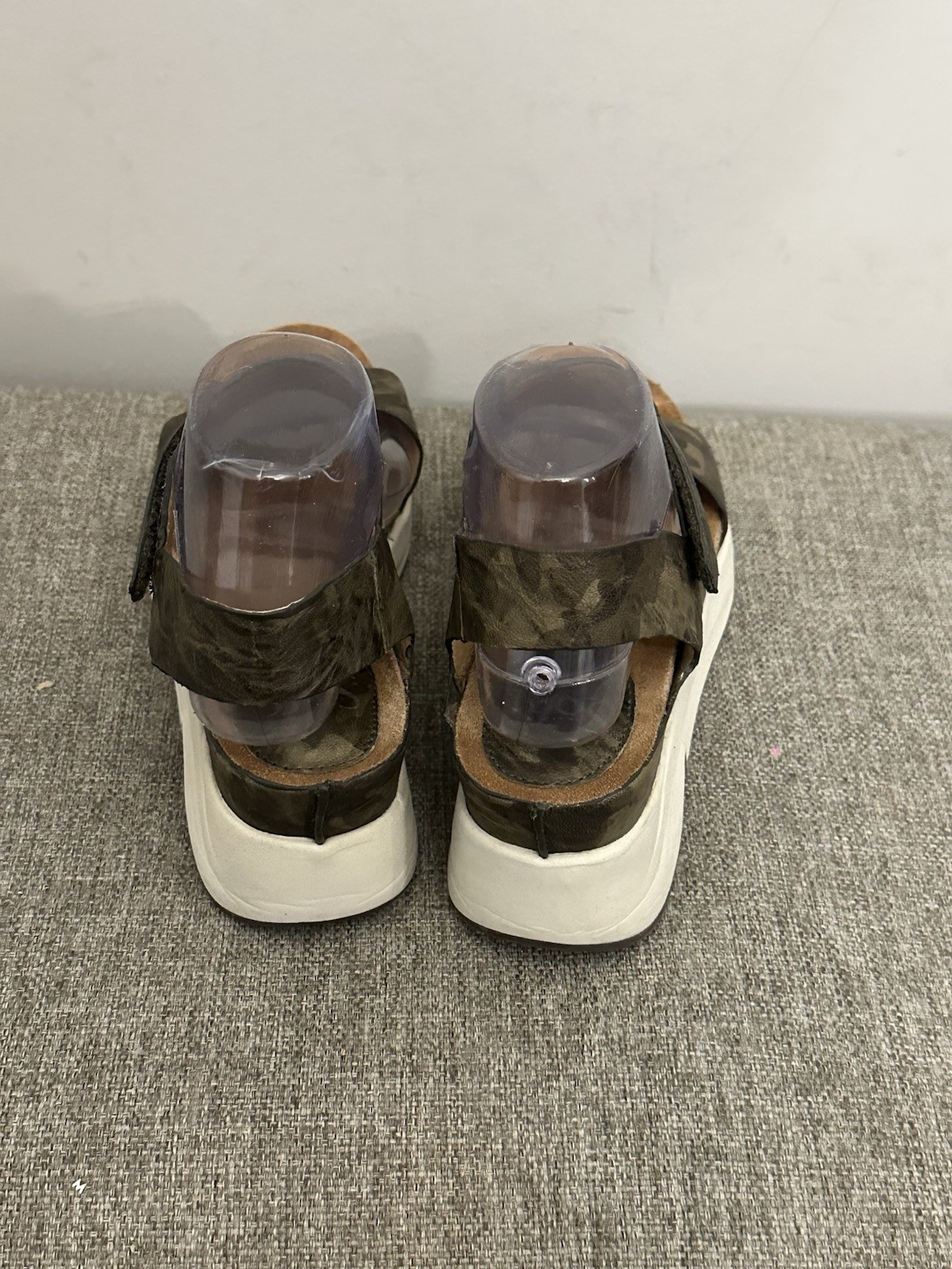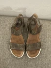 The Sofft Women’s Green Leather Camo Slingback Sandal in size 8 is a stylish and comfortable choice for women. The wedge heel and cushioned sole provide support and stability, while the adjustable slingback strap ensures a perfect fit. The camouflage pattern adds a trendy twist to the classic design, making it a versatile option for various outfits. Made from high-quality leather and featuring a hook & loop closure, these sandals are both durable and fashionable, perfect for any woman looking to make a statement with her footwear. Preowned Good Condition