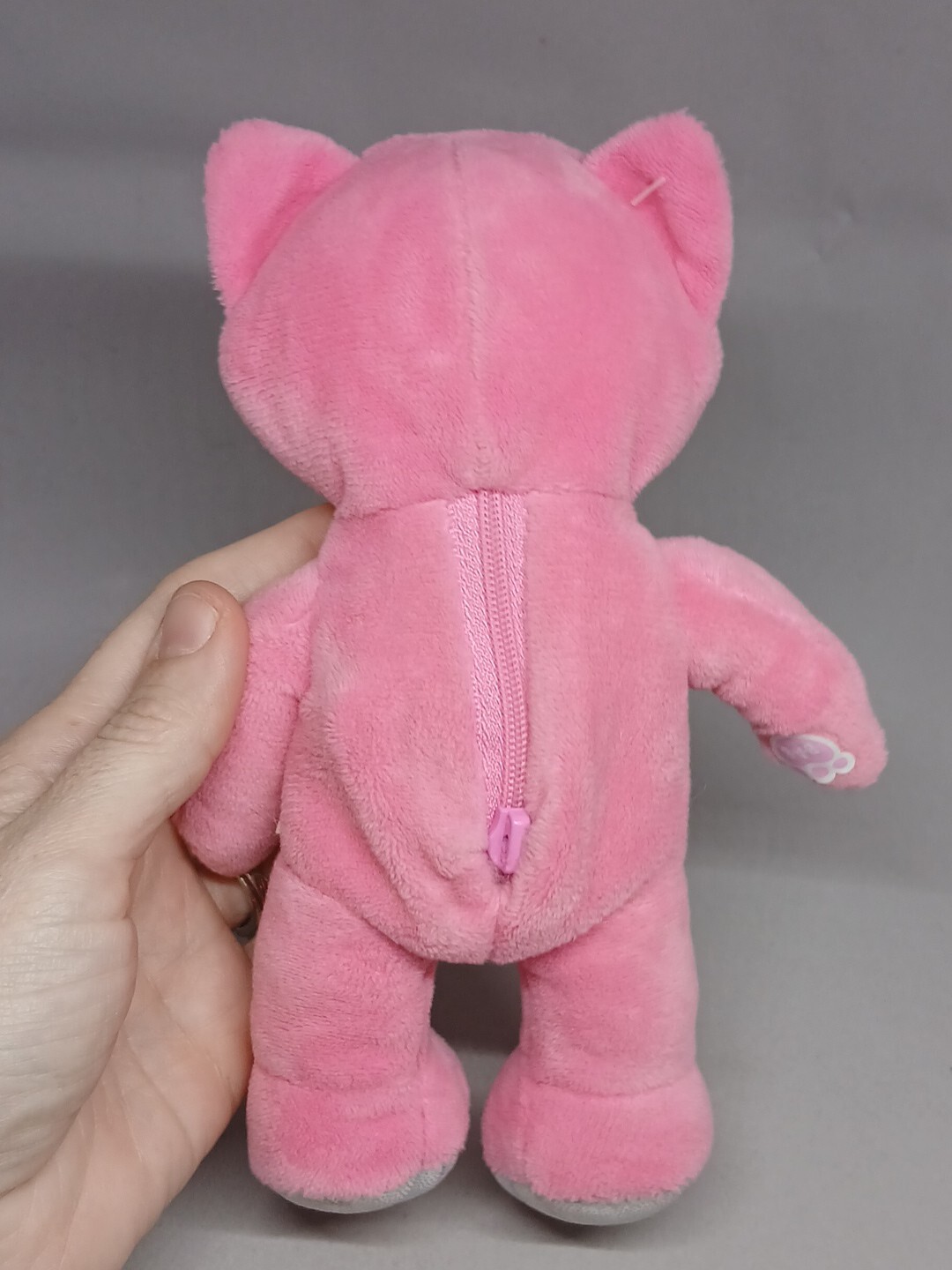 This adorable pink plush toy is perfect for any occasion and is sure to be a hit with kids and adults alike. It features a cute bear design, measuring 7 inches in size, and is made by the well-known Build-A-Bear Workshop brand. The toy is soft, cuddly, and washable, making it a great addition to any stuffed animal collection.