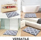 OLANLY Bathroom Rugs 24x16, Soft and Absorbent 24"x16", Grey Product Details Brand: OLANLY Size: 24"x16" Material: Microfiber Weave Type: Machine Made Item Weight: 0.95 Pounds Pile Height: High Pile Construction Type: Machine Made Back Material Type: Thermoplastic Rubber (TPR) Color: Grey Indoor/Outdoor Usage: Indoor Theme: Space Is Stain Resistant: Yes Product Care Instructions: Machine Wash Pattern: Trellis Shape: Rectangular Special Feature: Absorbent, Fade Resistant Room Type: Laundry Room, Bathroom, Living Room, Bedroom, Dining Room Product Dimensions: 24"L x 16"W Rug Form Type: Bath Mat Style: Moroccan Occasion: Christmas, Household Daily Use, Housewarming, Birthday, Thanksgiving Number of Pieces: 1 Item Thickness: 0.6 Inches Water Resistance Level: Not Water Resistant Is Autographed: No Age Range (Description): Adult Item Weight: 15.2 ounces Manufacturer: OLANLY Country of Origin: China [Comfortable and Luxurious] This bath mat boasts a contemporary Moroccan geometric design with a 0.6-inch high pile, incorporating a unique ultra-fine fiber-locking technique for unparalleled fluffiness and softness. Immerse your feet in the cozy and comfortable feel of the bathroom mat, adding a touch of sophistication to your space [Highly Absorbent] Our bathroom mat utilizes high-density water-absorbing fibers, trapping moisture in the deep pile to keep the floor dry. Whether stepping out of the bathtub, shower, or preparing for a sink-side bath, it prevents water from dripping onto the floor and aids in quickly absorbing water from your feet [Non-Slip Backing] To prevent movement and slipping, the bathroom mat features sturdy and persistent TPR backing. In contrast to other bathroom mats, the rubber backing withstands multiple washes without wearing or peeling, providing an additional layer of safety for you and your loved ones to move confidently in the bathroom.WARNING: Please note not to place the mat on wet surfaces and make sure that the floors are dry underneath the rug, to prevent slippage [Easy Cleaning and Maintenance] OLANLY bath mats are exceptionally easy to clean and maintain. We recommend machine washing with cold water and a neutral detergent, followed by low-speed drying or hanging to air dry. The vibrant colors remain unfaded, maintaining a fresh appearance even after multiple washes [Versatile Application] With various colors and sizes, this bath mat complements your decorating style. It is not confined to the bathroom but is also suitable for various settings like near the bathtub, in front of the sink, and more. Additionally, it makes an ideal choice for occasions such as Christmas, weddings, Father's Day, Mother's Day, and Valentine's Day