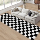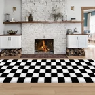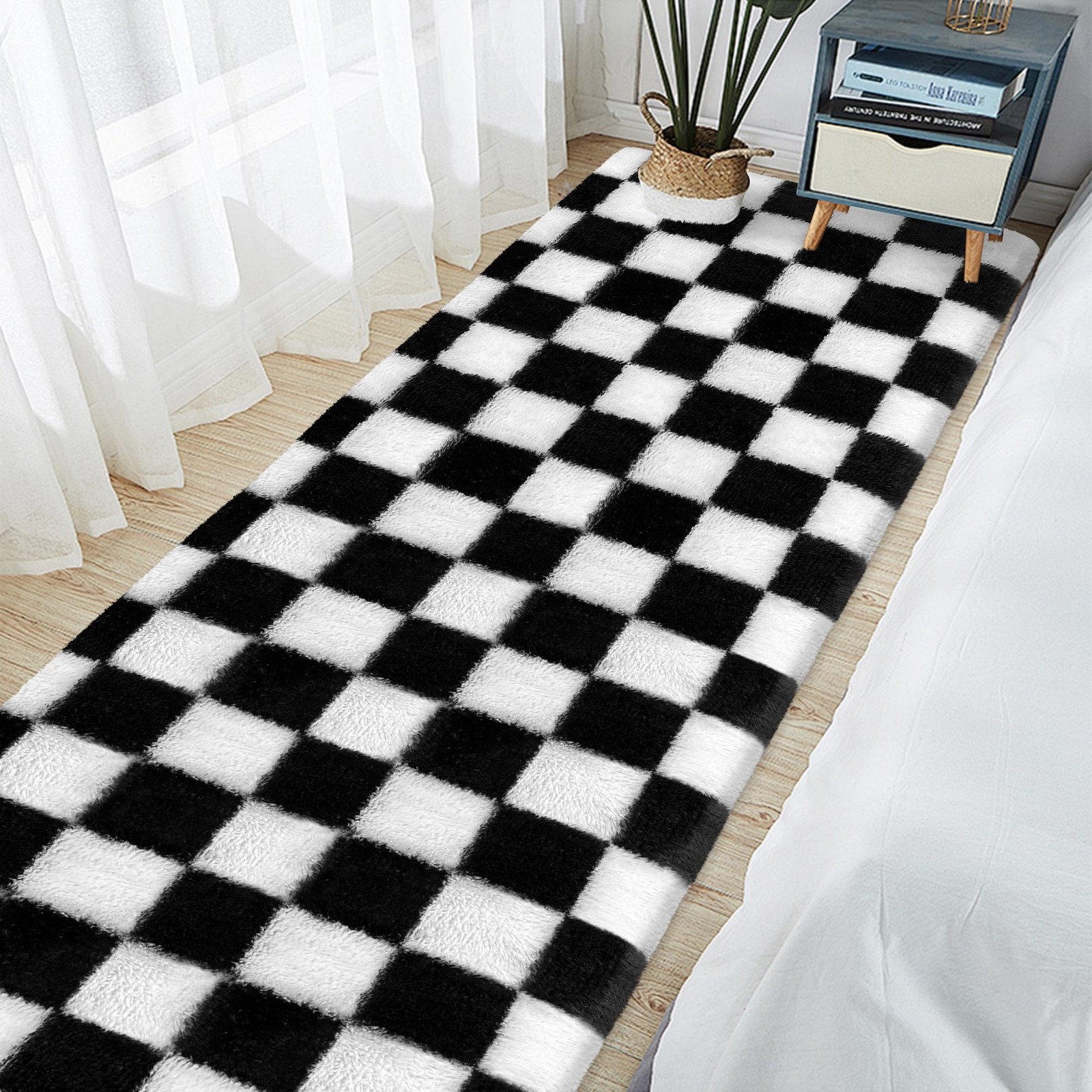 Modern Soft Plush Fluffy Plaid Rugs for Bedroom Living Room Pattern: Checkerboard Rug Size: 2x3 Feet/2x6 Feet/2x8 Feet/3x10 Feet Styles: Classic Checked, Modern, Chic, Luxury, Stylish, Trendy Applicable Scenarios: living room rug, bedroom rug, bedside rug, nursery rug, classroom rug, kids room rug, playroom rug, dorm room rug, study room rug. Products Features: 1. Fluffy 1.37 inches of high pile touch with 0.39 inches of thickened memory foam for extra warmth and comfort. 2. Have a upgraded non slip surface on the rug's back. Let your children and pets can freely play on the soft carpets. 3. Improved wrapped edges and fluff tightly locked design, no-shedding, uniform pile length, natural gloss, ultra soft, kids and pets friendly. Some Instructions: 1. Vacuum Packaging: Rugs are vacuum compressed for packaging. They may appear less fluffy and have creases upon arrival. Lay flat for 2-3 days to restore their full fluffiness. 2. Color Difference: Images may differ slightly from the actual colour of the product due to different angles and lighting effects 3. Machine Washing: Wash separately in water below 30°C/86°F using a mild detergent. Air dry for best care thus extending the service life of the product. Classic Checkered Patterns: Checkerboard design is a classic style that never goes out and easily complements all kinds styles of rooms. Our checkered rug runner can creat the beauty of colors and patterns to your space, which elevates aesthetic and instantly brighten up your room, adding a touch of fashion and personality for your home Ultra Soft Fluffy Shag Rug: Experience the luxury of our soft shaggy rug made from long plush microfiber with a thickened memory foam interlayer. This fuzzy rugs for bedroom offers unparalleled comfort, providing warmth on cold floors. It can fit anywhere you wish to comfortably step on your bare feet, making you feel like you're walking on a cloud Enhanced Anti-Slip Backing: Shaggy bedroom rug are backed with thousands of high-density non-slip points which improves friction and makes the kids rug bedroom carpet not slide easily. Keeps it firmly in place on any floor surface and you can play with children on the living room carpet runner freely Versatile Decor for Any Space: The chic black and white color scheme of our living room carpet rug makes it perfect for various spaces. Whether it's used as a bedside rug, in your living room, or even in a dorm, this fluffy area rug instantly elevates the look of your home. You can put it next to the sofa, bed, under the desk, under the dining table, cloakroom, dormitory, kid's room, hallway and so on Easy to Maintain: Simply shake off surface impurities gently or use a vacuum cleaner for daily maintenance. It can even be placed in a washing machine for regular deep cleaning. After cleaning, air dry in a well-ventilated area, avoiding direct sunlight or using a dryer to extend the service life
