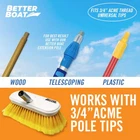 SOFT TEXTURED BRISTLES GENTLY REMOVE DIRT: Our heavy duty commercial grade brush head is ideal for scrubbing scum, washing dirt, grease, grime and bird-droppings without being harsh or scratching painted surfaces or clear gel or ceramic coats. WORKS ON MANY SURFACES: Car wash brush & boat brush head safely cleans fiberglass, wood, grout, tile, metal, siding, glass auto & RV. Cleaning scrub brush is scratch free and ideal for truck & car cleaning, decks, carwash, hull cleaner & deck brush. 3/4” ACME THREAD FITS MANY UNIVERSAL POLE TIPS: Our boat deck brush head works with our long extension Extendable Rod, and other telescoping handles, a standard broom handle or rod that fits a 3/4” acme thread and floats as well THICK RUBBER BUMPER PROTECTS SURFACE WHILE CLEANING: A thick wrap around rubber bumper protects boats and vehicles from damage and marks while cleaning. The large brush face is wide and deep so you can quickly clean large areas. WHY BETTER BOAT: We are a family owned American business committed to making premium quality RV care and boat cleaning supplies. We stand behind your satisfaction and our accesories, equipment & washing products including our attachment deck brush.