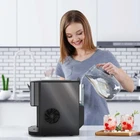 This compact and sturdy tabletop ice make can be easily integrated into all kind of spaces, and it can produce up to 44 pounds of soft and chewy ice cubes within 24 hour with a capacity of 2.4 liters of water tank. In addition, its ice storage capacity of 3.3 pounds can meet your instant cold drink demand. The produced ice cubes are delicious and chewy, and can retain the flavor of drinks, which is suitable for a variety of drinks. Self-cleaning function simplifies maintenance, and starts a 10-minute cleaning cycle with one button. Simple operation, automatic ice discharge, saving time and effort. The ice maker will be the ultimate solution for your perfect iced drinks at home, kitchen, office or any party! [Compact Yet Sturdy] Measuring just 16.34" x 10.63" x 16.93", this ice maker fits seamlessly into any space, delivering high performance without occupying much room. Ideal for homes, offices, parties, or even basement bars where space is at a premium. [Rapid Ice Production] No more long waits for ice! Fill the 2.4-quart water tank and enjoy up to 44 pounds of ice in just 24 hours, keeping your drinks perfectly chilled and ready. [Tasty, Chewable Nugget Ice] Say goodbye to hard, unchewable ice blocks. Our ice maker produces delightful nugget ice that’s crisp and retains your drinks’ flavors, perfect for any beverage from whisky to soda. [Easy Self-Cleaning] Maintenance is a breeze with the self-cleaning function. Simply press the "ON/OFF" button for 5 seconds to activate a 10-minute cleaning cycle, ensuring your ice maker stays in top condition with minimal effort. [Effortless Operation] Forget the hassle of manual scooping. Just pull the switch, and nugget ice slides out effortlessly, keeping your hands free and the ice cleaner.