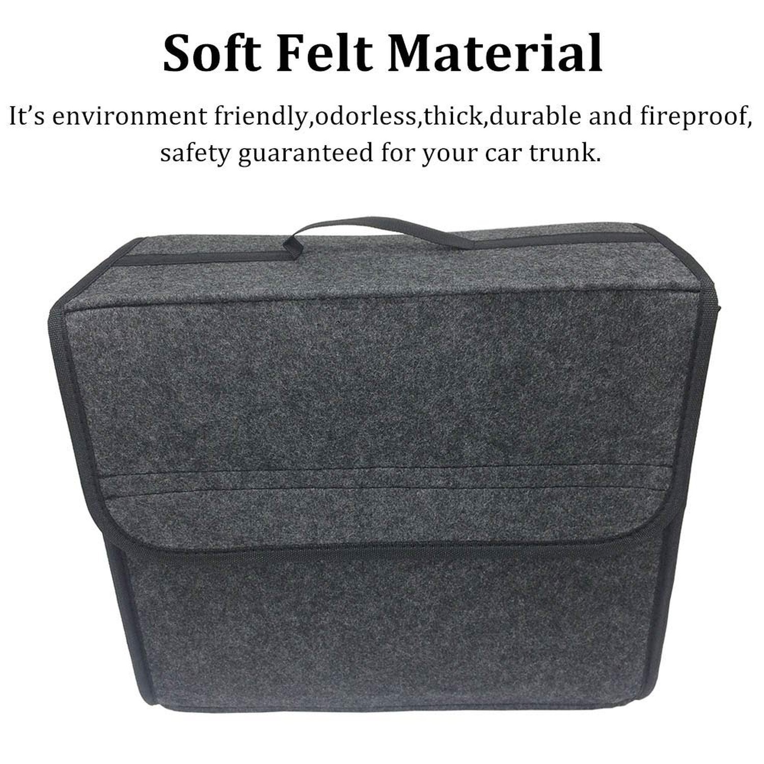 Soft Felt Car Bag Organizer, 13.8x11.8x7.9 Inch, Folding Car Storage Box, Non Slip, Fireproof, Grey Product Details Specific Uses For Product: Car,Car.handle Material: Felt Special Feature: Slip Resistant Color: Grey Brand: BUENNUS Product Dimensions: 7.9"D x 13.8"W x 7.9"H Shape: Rectangular Number of Items: 1 UPC Manufacturer: BUENNUS Specific Uses For Product: Car,Car.handle Material: Felt Special Feature: Slip Resistant Color: Grey Brand: BUENNUS Product Dimensions: 7.9"D x 13.8"W x 7.9"H Shape: Rectangular Number of Items: 1 UPC: 631384626816 Manufacturer: BUENNUS Part Number: BUENNUS106GRAYSI Item Weight: 11.7 ounces Item model number: BUENNUS106GRAYSI Item Package Quantity: 1 Special Features: Slip Resistant Batteries Included?: No Batteries Required?: No Date First Available: July 29, 2019 Capacity - 13.8x11.8x7.9 inch (35x30x20cm).Spacious enough for you to hold your fire extinguisher,repair tools,toys,groceries and other articles. Non Slip - The back and bottom are both equipped with hook & loop.This design makes it easy to be fixed on the surface of the side and floor of your trunk. Convenient Handle - The handle on the top makes it convenient to move in and out of your car.Handle it out anytime or anywhere. Easy to Clean - Felt material is very easy to clean.Gentle hand washing with water.No need brush,washing powder,or other chemicals. Why do we choose felt as the material?1. Compared to cotton,it’s fibrous,tough,silky,soft and also has a cotton touch,and it’s better to keep a good shape.Odorless,not easy to loose,good wear resistance.2. It’s very environment friendly and close to nature.Can be effectively degraded and entered the next environmental cycle in a non-toxic form.3. Can prevent the burning of combustibles.If it’s on fire,use it to cover the fire so that the fire will not spread.A good choice for both organizing and your car safety.Capacity13.8x11.8x7.9 inch( 35x30x20cm )Package Content1 piece of BUENNUS felt car trunk organizer