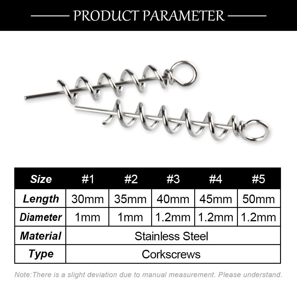 Rosewood 3cm 3.5cm 4cm 4.5cm 5cm Fishing Pins Spring Twist Lock Soft Bait Screw Worm Centering Fixed Latch Needle Accessories Material:Stainless steel Size:30mm/35mm/40mm/45mm/50mm 35mm/1.37in 45mm/1.77in Diameter:1mm/1.2mm package:50pcs/pack Perfectly designed Corkscrews, covering all sizes of soft lures, from small to big perfect for spin shad rigs! Strong, Stainless long corkscrews, perfect for all sorts of corkscrew rigs.Each corkscrew has a strong and durable construction that will work on a wide range of soft lures. Simply push the pin end of the corkscrew into the front of your soft lure and when you feel resistance from the first coil, turn the corkscrew to screw firmly into place.ng Twist Lock Soft Bait Screw Worm Centering Fixed Latch Needle Accessories
