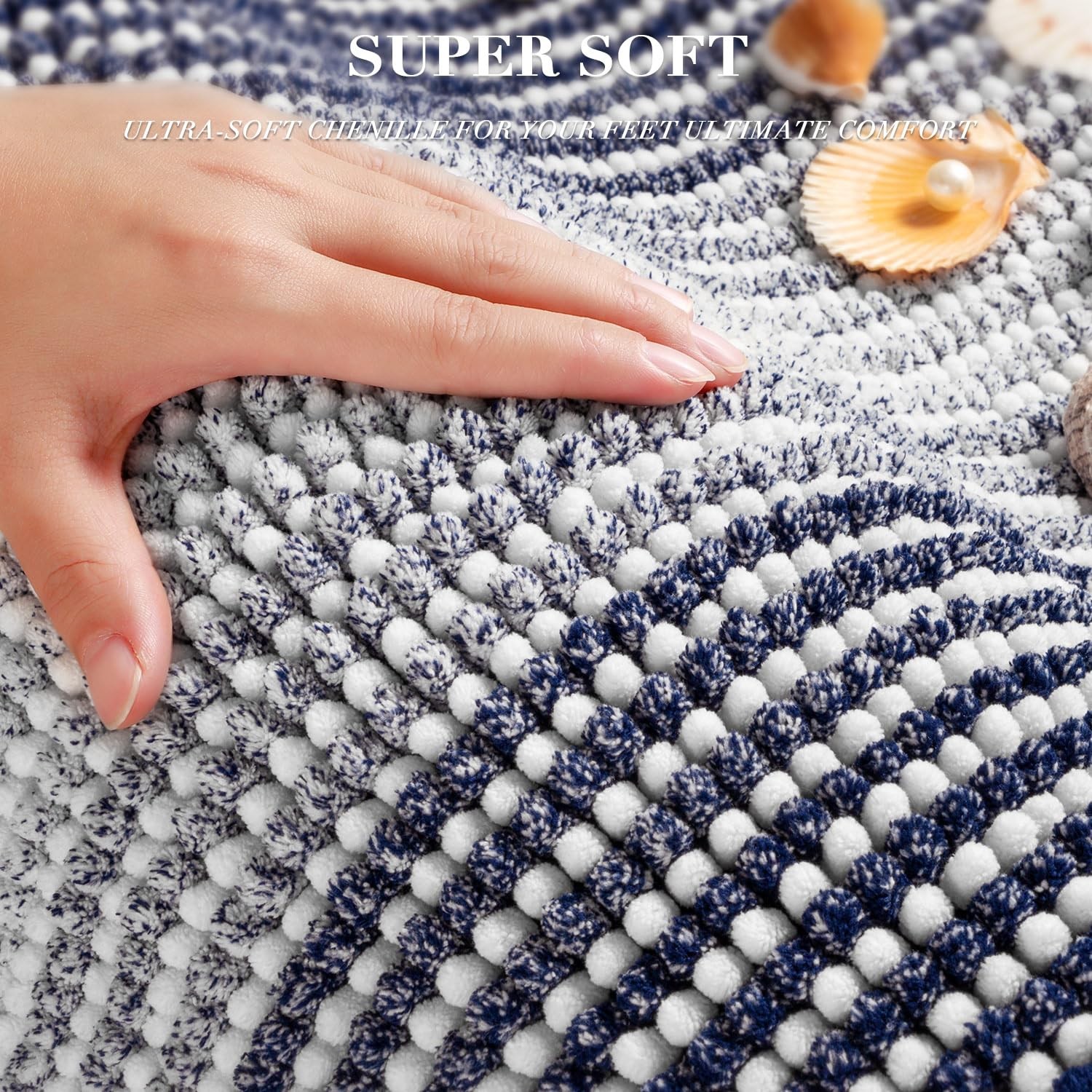 Chenille Bathroom Rugs and Runner Mats Set of 2 for Bathroom Floor You always need a soft, warm, dry place to relax your feet after you step out of a refreshing shower, 's bathroom rugs are ultra-soft and absorbent to give your feet the gift of exceptional comfort. Our bath mat set made of 100% plush chenille, the fibers dense and not easily turn deflated after use, non-slip material provides long-lasting and durability performance, super-absorbency pile keeps your floor dry. What's more, the unique gradient pattern design leads a beautiful, rich and charming element to your bathroom and home. Extra Soft Chenille : Luxury chenille microfibers, bring you comfortable feeling to the touch like walking on the cloud. Warm and soft thick pile offers a good way to soothe tired feet. Super Absorbent : The soft chenille bathroom mat is pretty comfortable to touch, super-absorbent performance can quickly soaks up an impressive amount of water and dry quickly. Non Slip Backing : High quality hot melt adhesive backing to keep the bath mat firmly in place and prevent shifting and skidding. Machine Washable : the bath rugs is made with premium fiber locking technology so that every fiber is firmly attached onto the backing to prevent shedding during frequent machine washing. Colours & Sizes Variants : Unique gradient pattern design, a bunch of colors for individual needs, these bath rug set is easily coordinate with bathrooms or any different styles. Perfect Chenille Bathroom Rug Set : With different colors and sizes to choose from, can be used at bathroom, shower, vanity, tub, bedroom, front of sink or other place in your home. 【PREMIUM CHEILLE BATH MAT SET】: You will get 20"x 47" & 16"x24" bathroom rug sets, which are made of high quality fluffy plush chenille microfibers. The soft fibers are very dense and not easily turn deflated after use, soothing your tired feet and shielding your toes from the cold floor. The density and plushness of our pile surpass that of most other brands. 【EXTRA ABSORBENT BATHROOM RUG】: The luxury performance chenille microfibers can quickly absorb moisture from your feet when you step out of the bath or shower, and save your floors from dripping water, and dries quickly, making your feet feel the ultimate luxury enjoyment 【NON-SLIP/BREATHABLE】: High quality hot melt adhesive backing to keep the carpet firmly in place and prevent shifting and skidding. Provide better security for families with children or the elder. Attention: The bath rug underlay should be clean, flat, and dry before placing the mat on the floor. Water or dust under mat may cause slippage. 【MULTI-PURPOSE USE】: The gradient color design for this shaggy bathroom rug set is beautiful, make it easy to go with any bathroom home decor, bring charming and fantastic feeling for your family, multiple sizes are essential for any style spaces, it can be applied in bathroom, kitchen, bedroom, living room, door entrances, stairs, balcony, laundry room, pet house, pet rug, and more. 【MACHINE WASHABLE BATH RUGS】: Durable material, machine washable, With premium fiber locking technology, every fiber is firmly attached onto the backing so that the bathroom mat will not shed during using or washing, color will stay nice and vibrant for years to come no matter how many times be washed and dried. Machine wash with cold water and mild detergent (no chlorine or bleach) tumble dry at low speed or hang dry.