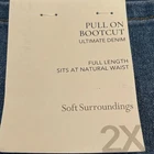 - Brand: Soft Surroundings - Size: 2X Plus - Color: Blue - Style: Bootcut - Pull-on design for easy wear - Ultimate Denim for a comfortable fit - New with tags Measurements: Waist: 42" Inseam: 29" Rise: 14" Leg Opening: 10"