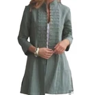 Soft Surroundings Sheffield jacket Rare, no longer available Slash pockets Sea foam green Gold coins resembling buttons Mandarin style collar Unlined No closure Long sleeve Side slits Size Small 100% ramie Bust 39” Shoulder to shoulder 15” Hips 41” Length 34” Hand wash cold
