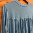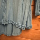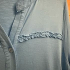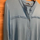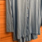 Bright Blue Full Button Front V Neck Tunic Length Blouse With Ruffle Detail On Front Materials: 95% Viscose 5% Spandex Style: 2CK25 Measurements In Inches: Pit To Pit: 22 Length: 30-32
