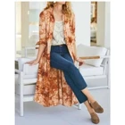 Soft Surroundings Tie Dye Linen Blend Boho Button Front Long Duster Dress Medium