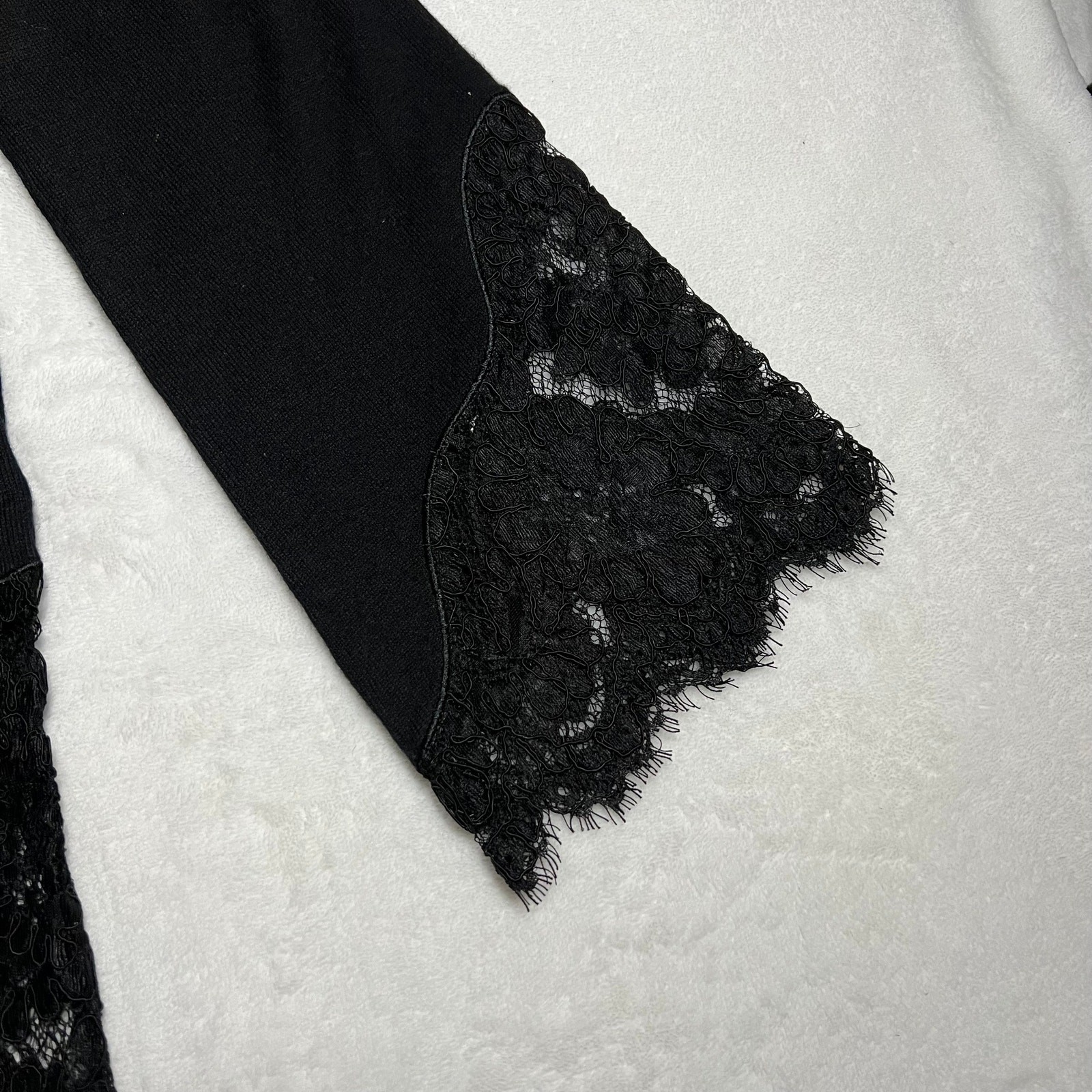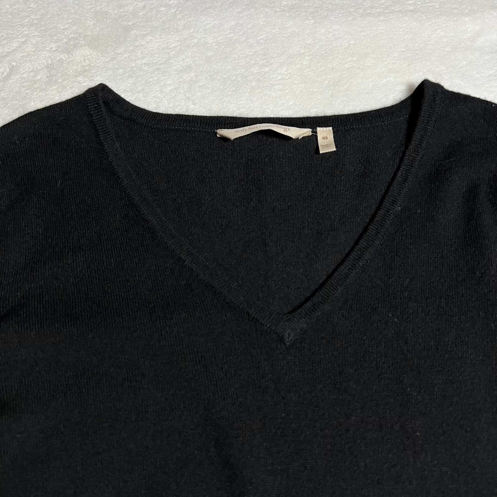Soft Surroundings V-Neck Wool Blend Lace Trim Sweater Size X-Small Neutral CONDITION: Pre-Owned. Excellent Used Condition. FLAWS/ALTERATIONS: No flaws. COLOR: Black SIZE: Women’s Size X-Small DETAILS: V-Neck Long sleeve Lace trim on sleeves and body Stretch Wool blend Pull over MEASUREMENTS: Chest: 18.5" Full Length: 28.5" **All measurements are approximate and are taken flat** MATERIAL: BODY: 32% Nylon 28% Cotton 27% Wool 13% Viscose LACE: 59% Nylon 18% Viscose 17% Polyester 6% Cotton Bundle 2 OR MORE items to save more! Reasonable offers are welcomed! TAGS: Casual Comfy Fall Winter Contemporary Minimalist Boho Bohemian Cottagecore Neutral Basic Effortless Layers