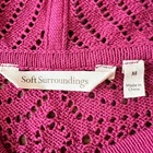 Soft Surroundings Womens Heart Knit Full Zip Cardigan Hoodie Magenta Size M Zipper pulls at top and bottom Knit forms heart shape 100% Cotton Long Sleeve Excellent pre-owned condition Size: Women's Medium Measurements (approximate, laying flat) Bust (underarm to underarm): 18" Length: 29" Beach, Coastal, Resort wear, Cruise, Lightweight, Happy