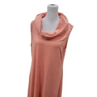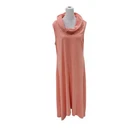 Elevate your summer wardrobe with this stunning Soft Surroundings Women's Maxi Dress in size Large. The dress features a beautiful coral color, sleeveless design, and a cowl neckline that gives a modern and casual vibe perfect for beachy and preppy themes. Made with a combination of elastane, Modal, and cotton, this dress provides a comfortable and stretchy fit, making it perfect for travel and casual occasions. This dress is a perfect addition to your collection with its long dress length, minimalist style, and solid pattern. It's a tank dress with a maxi skirt, making it perfect for the summer and spring seasons. The dress is not handmade, and it's a regular fit. Get ready for your next vacation or beach day with this stunning dress that will make you feel comfortable and stylish. Soft Surroundings Coral Modal Blend Cowl Neck Hi Low Maxi Dress Size Large Excellent pre-owned condition. No visible imperfections Brand: Soft Surroundings Size: Large Cotton/modal/elastane -Style 29066 Approximate flat laying measurements: Pit to pit: 20 Length: Front 45 Back 51