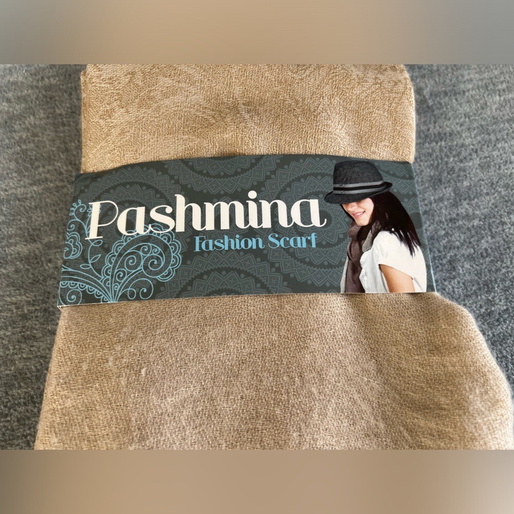 Pashmina Fashion Scarf Tan Color 28 x 78 Blue Star Clothing Company Soft New Elegant tan pashmina fashion scarf with fringe detail. From the blue star clothing company. Lightweight and soft to the touch -able to wear it five ways -see-back of packaging photo. Condition- new in packaging Size-28 x 78" Color - tan/taupe Material Content- blend of: Rayon, acrylic My items are primarily thrifted and I do my very best to note any imperfections/callouts. Wash to wear - use measurements provided and match to clothes you currently own to determine best size match Ships Next Day Monday - Friday My items are stored in a pet/smoke free home Thanks for stopping in and looking! Lisa