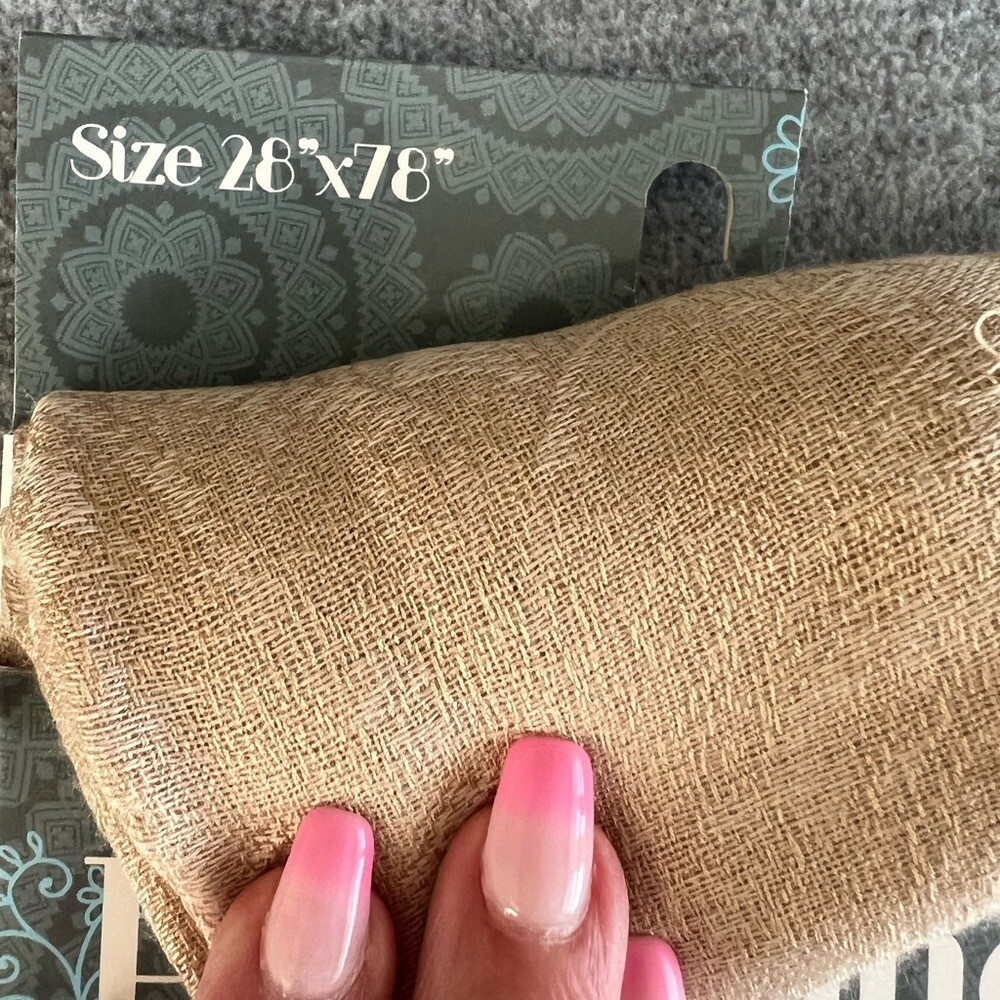 This elegant tan pashmina scarf is so soft and versatile—perfect for any outfit! The lightweight fabric drapes beautifully, and the fringe adds a stylish touch. Love that it can be worn in multiple ways, making it a must-have accessory. The neutral tan color pairs with everything, and it’s brand new in packaging. Great quality from Blue Star Clothing Company!