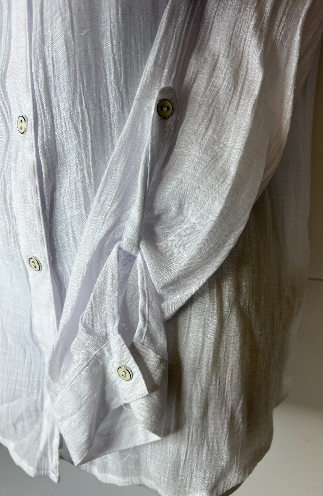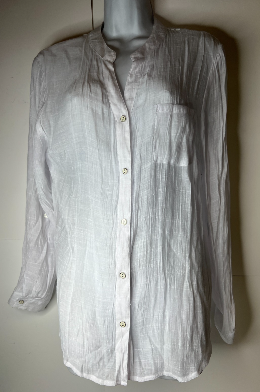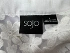 Sojo Women's Large White Blouse Sheer Back Lacey Floral Embroidered Roll Tab. Pit to Pit: 20" Shoulder to Hem: 28" Product Condition PRODUCT CONDITION: We sell vintage, overstocks, returns, shelf-pulls and new items. Items could have dents, shelf wear, torn and not in the greatest condition. In no way does this effect the product itself. If we think a product is unsafe or used, we will not list it. We inspect carefully and will describe the condition as best as we can. Any problems, please contact us immediately so we can rectify the problem. Shipping Shipped within 1 Business Day. All orders are processed and shipped out within 1 Business Day. All orders received on Saturday and Sunday will be shipped out Monday. Returns 30 Day Return Policy on most items. We will gladly accept returns. Item(s) must be returned in original, unused condition within 30 days with original tags/packaging. Cancellation Policy If you wish to cancel the order, please open a cancellation request. If the order has not already been processed, the order will be cancelled and a full refund will be applied. Please do not message to request for cancellation, as we might not be able to address all messages in timely manner. Incorrect Shipping Address It is Buyers responsibility to ensure that the shipping address provided is correct.
