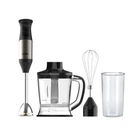 Powerful blending, chopping, grinding, whisking, purifying and even liquidizing is now possible in a simple one hand operation thanks to this amazing professional hand blender that includes everything for a successful and healthy prep with its complete accessory kit. Now you can make amazing smoothies, chop and grind nuts and herbs as well as prepare creams and whips all with a press of a button. There seems to be nothing this hand blender can’t do! High quality components made of stainless-steel, and BPA free materials make this a quality, long lasting product. Easy to use, simple to clean, and a great multipurpose product! Powerful motor for professional performance with 20 adjustable speeds and pulse function. *Performs at 1000W when used with the chopping attachment (rated at 500W) Accessory kit includes chopping bowl, blending stick and measuring vase Stainless-Steel detachable wand facilitates effortless cleaning BPA free accessories Dark- Brushed Stainless-Steel / Non grip body Included components: blender, manual, choping bowl, measuring stick, blending vase