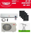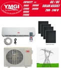 YMGI Solar Hybrid Powered Mini Split Ductless Air Conditioner 9K-36K Item Description YMGI HYBRID AC/DC POWER SOLAR ASSIST DUCTLESS MINI SPLIT AIR CONDITIONER WITH HEAT PUMP 208-240V UP TO 35 SEER DC INVERTER VRF SOLAR ASSIST HYBRID FOR MULTI ZONE SYSTEM AVAILABLE FOR ENQUIRY PLEASE CONTACT US FOR DEAILS ( SEARCH BIZLANDER HVAC AND SOLAR) YMGI Solar Assist system is HYBRID AC/DC Powered Solar air conditioners Designed for low energy consumption, easy installation and fast payback. It requires NO batteries, NO inverter, NO controller and need only PV panels to deliver a huge savings. During the day, when air conditioning is needed most, solar panel will help the system to uses small amounts of power (as low as 30W) from the utility company. At night, the system can still provide stable operation and generate savings due to the high efficiency by its DC inverter technology. Hybrid operation eliminates the need for batteries and allows 24 hours per day use of the system. The system can be used and plugged into 208-230V power supplies for home or work. Condition : Brand New item unused unopened in original sealed package Function Cooling Heating Dehumidification Air Purification Description Single Zone Solar Hybrid Ductless Mini Split Air Conditioner with Heat Pump From 9000 BTU to 36000 BTU 3/4 Ton to 3 Tons Capacity Heating Cooling And Dehumidification Up to 35 SEER DC Inverter Compressor Super Quiet Auto Restart, digital Timer and Turbo Mode Require AC power connection to start the system. Solar Panel will help to compensate power consumption FEATURES Minimized municipal power usage. PV panel for DC power, supplemented by municipal power. (Municipal electricity is required for Continuous operation.) Advanced temperature, comfort and safety control Can be integrated to work with existing solar panels R410A refrigerant Precharged and constructed from environment friendly materials. Solar panel installations eligible for Federal tax credit and/or State and/or utility companys rebate/incentive programs Quiet and efficient heating & cooling LED display shows set temperature & operating modes Motorized louver system quietly distributes air evenly Remote Control DC Inverter technology Wide working ambient temperature ranges Stylish system design Compact outdoor unit with side discharge Outdoor unit ships pre-charged. High quality compressors Durable powder coated cabinet Default flare brass connection valves Knock-outs for refrigerant pipes and wiring Built to meet ETL/UL/CSA/ARI standards Easy installation and maintenance Equipment and Installation may be eligible for Federal and State Tax benefit. YMGI Smart Technologies Auto-Restart : After a power cut the unit will restart automatically with the previous function setting when the power returns. Intelligent Auto-Defrosting: The unit can enter or quit the defrosting mode automatically by timely detecting the frosting situation of the outdoor unit. Sleep Mode: Because our body temperature cools down as we sleep, the unit automatically adjusts the setting for all-night comfort. Air Purifying and Deodorizing Filters: Industrial development has offered from one side a better life style, but on the other side, it has increased polluting substances presence in the air that helps in spreading of various kinds of diseases. Among the polluting agents, the ones we can more frequently find at home are anti-bacterial dust particles, moulds and etc, which are causing allergic phenomenon, breathing and typical upper respiratory problems. This dual washable filter screen is effective in preventing anti-bacteria mould and duct particles and ensuring a healthy indoor environment. Turbo Mode: This function enables the unit to reach the preset temperature in the shortest time. Self-diagnosis and Auto-Protection Function: This function can electronically detect the errors and display the diagnosis by a series of flashing LEDs on the indoor unit. Then the unit will automatically switch to protection mode. IMPORTANT NOTES ABOUT THE DC INVERTER SYSTEM VARIOUS PERFORMANCES: The rated performance data printed on the nameplate were tested per AHRI 210/240 standards at standard indoor & outdoor conditions and standard installation set-up. Actually the DC inverter outdoor unit could modulate to match whatever capacity needs are called/requested from indoor side, to produce a wide range of capacities, minimum could be about 15% of the rated number and maximum could be around 160% of the rated number. Once the DC inverter system is installed, each indoor unit's output and so the outdoor unit performance will all vary over the operation period: soft starting, turbo quick cooling/heating, maintaining, defrosting, switching, and other condition changes. Actual performance varies upon many factors such as indoor and outdoor temperatures, inter-connecting pipe length/ bending, elevation difference between indoor and outdoor units, refrigerant charging level, vacuum level, leakage, air or moisture or contamination level, foreign substance left in the piping, indoor filter clean level, indoor and outdoor coil conditions, and other factors. When the rated total capacity of all the indoor units exceeds the rated capacity of outdoor unit, each indoor unit may not output the rated capacity and one may differ from other, upon other installation/operation factors, it all units are turned on to run compressor simultaneously. Connection Pipes and Communication Wire (included at 15 ft) Communication wire is about 13Ft BTU / Area Coverage Guide 9000 BTU Covers Approx 400 ft² 12000 BTU covers Approx 500 ft² 18000 BTU covers Approx 750 ft² 24000 BTU covers Approx 1100 ft² * Cover area is a guide only, other factors should also be taken into consideration such as ceiling height, number of windows and wall material those affect insulation Please check and Confirm with Licenced HVAC Installed for the size of unit that suit your need. Specification: Please refer attached photo for specificat
