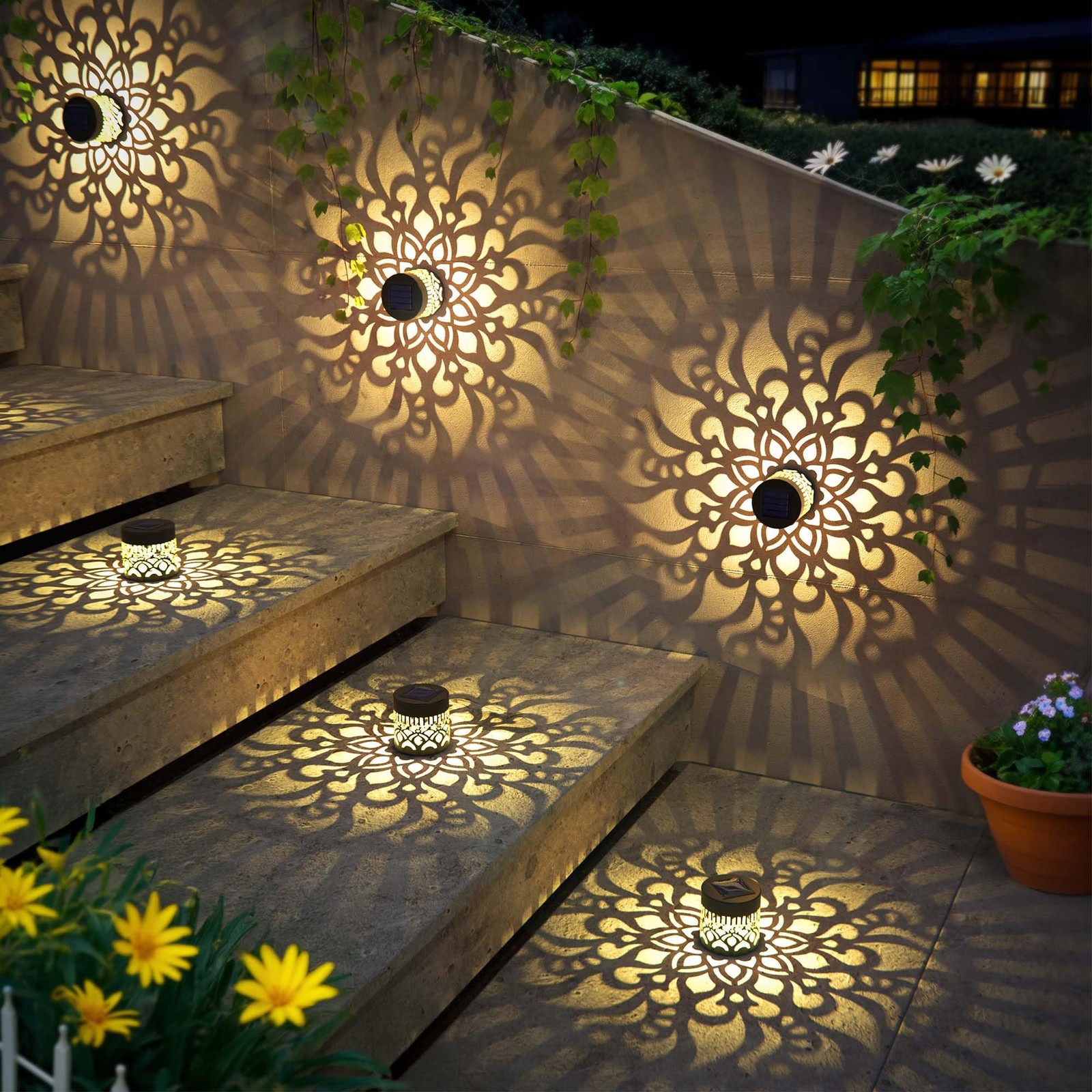 Specification: Material: Metal Package Size: 3.35''(L)*3.35''(W)*3.94''(H) Powered Source: Solar Powered Battery: 1×AAA 600mAh NI-MH battery Charging Time: 6-8 hours Protection Level: IP6.5 Working Time: 6-8 hours (when getting enough sunlight) Method of operation: Automatic by light sensor You will get: ★4 pack solar fence light outdoor ★Timely after-sales service Attention: ➤Don’t forget to turn the button on while charge it. ➤The light is mainly for decoration, will not bright enough for illumination as other LED lights. ➤No wires needed. Make sure the button is in the “ON” position before change it in the sun.If the button is in“on" position,keeping the solar panel in the darkness,then the lights will light up. ➤A fun, sustainable and beautiful way to make light, This Solar hanging Lanterns is ideal for garden lighting, decorating your courtyard, lawn,table and all other outdoor (and indoor) pursuits that would benefit from beautiful lighting to create a wonderful and relaxed atmosphere. Solar outdoor lights for fence are only used as beautiful decorations. The fence lights is amazing, the pattern is unique and copyrighted. These yard art fence decorations with warm light can decorate your gorgeous life with a more romantic atmosphere. These solar wall lights outdoor are powered by solar energy. The solar backyard lights outdoor decorative have a built-in light sensor, which is automatically charged in the sun, and it will automatically light up at night after turning on the switch. The outdoor deck lights waterproof can illuminate for 6-8 hours after a full charge under normal conditions. These solar step lights are made of metal to withstand many types of weather, like rain, snow, frost, high temperature and other extreme weather conditions. They have two ways of installation, use the screws included to wall mount, or fix them on the any flat surface with included 3M doubled tape. They are very suitable as holiday decorations and gifts for relatives and friends. If your accessories are missing or the light is not working about the outdoor hanging solar lantern, please feel free to let us know. We will send you a replacement immediately for free in 180 days.