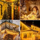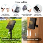 【Solar Icicle Lights】Solar Icicle Lights have 128LEDs.16 strand Hanging Fairy String Lights, each string lights is 0.8M/2.62ft (8 LEDs per chain), with a 2M/6.6ft extra-long lead. Beautiful string lights will add a sparkle to the spot No matter when events like wedding party, or any ordinary gathering. 【Automatic ON/OFF Solar Power Lights】Solar waterfall lights upgrade new solar panel with a built-in large capacity 1200mAh battery. Working for 18 to 30 hours after charged in full direct sunlight for 6-8 hours, the lights automatically turn the light on at dusk and off at dawn. NOTE: There is a ON/OFF switch button at the back of solar panel, please switch it ON before charging. 【Buttons & Multifunctional Remote】You can use the remote control or the buttons at solar panel back to turn on/off and adjust the 8 lighting modes. Remote control adds brightness adjustment and timing functions, which allows you to operate the light you want without moving around, which is very convenient. 【Waterproof & Memory Function】Both solar power string lights and the solar panel are IP65 Waterproof, making it perfect for both indoor and outdoor without any worry of moisture or weather damage or short circuit. With low voltage no overheat after many hours of usage. Solar string lights having the built-in memory chip will automatically remember the last setting, saving you the trouble of resetting. 【Easy to Install】Solar string lights has its own ground plug and can be placed on soft ground such as lawn and garden. Waterfall string lights can be hung indoors or outdoors like Xmas Trees, Yards, roof, garden, window, wedding, party, birthday etc.