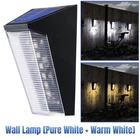 LED Solar Deck Lights Outdoor Garden Patio Pathway Stairs Step Fence Wall Lamp Product Feature 1.Solar Charging: The Solar Wall Light can be charged by solar energy, absorbing energy during the day and automatically lights up at night. 2.Outdoor Waterproof: The Solar Wall Light has IP55 waterproof rating, fearless of wind and rain, and can be used normally on rainy days. 3.ABS Material: The Solar Wall Light is made of ABS material with excellent impact resistance, which can effectively prevent damage due to accidental impact during use. 4.Intelligent Light Control System: Solar Wall Light adopts intelligent light control system, which can intelligently sense the change of external light and automatically turn on and off the light. 5.Easy to Install: Solar Wall Light is an independent power generation system, no need to lay complicated wires and cables, installation is more convenient and quick. [Warm Light + White Light] Working Mode: Solar Wall Light has 8 working modes, 1 speed white light, 2 speed warm light, 3 speed full mode cycle, 4 speed dual color fast cycle, 5 speed dual color slow cycle, 6 speed dual color gradient, 7 speed dual color fast cycle fast flash, 8 speed dual color mixed fast flash. Product Specification Solar Panel: polycrystalline silicon 2V*130mA Battery Parameters: Ni-MH AA 1.2V/600mA Voltage: 1.2V Power: 3W Light Source: Dual (2-color) *6 pcs warm/pure white LED ( 8 working modes ) 7 color change *6 pcs RGBW SMD ( 5 working modes ) Charging Method: solar charging Charging Time: >8 hours Working Hours: >8 hours Waterproof Grade: IP55 Switch Mode: hand control + light control Material: ABS Color: black Size: 6x7x12cm/2.36x2.76x4.72in Package Includes 2x Solar Wall Lights 2x Screws 2x Expansion Tubes