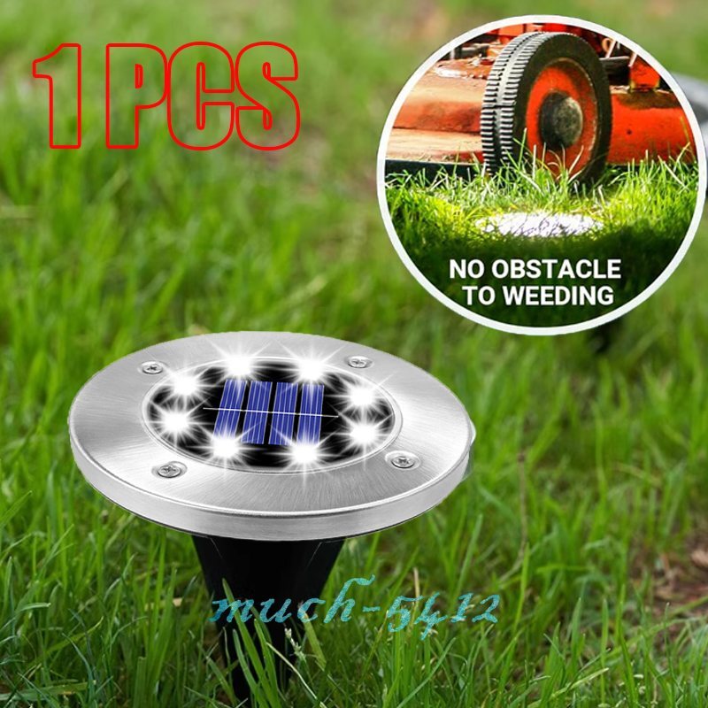 1PCS Solar In-Ground Lights Outdoor Buried Lamps Disc LED Lawn Pathway Garden FEATURE: * Unique appearance design: Perfect for Outdoor Landscape, Walkway, Lawn, Steps Decks, Pathway Yard Stairs Fences and etc. * Solar powered & Environmentally friendly: No electricity cost, 6-8 hours charging during the day. * Intelligent light control sensor: Adopt light sensor system, automatically turn off the lights during the day to charge, and automatically turn on the lights at night. * Large-capacity battery: Built-in 800mAH battery can last for 8-10 hours when fully charged, and it can be charged for 6-8 hours during the day. It can last up to 8-10 hours. * Professional IP65 waterproof protection level: Suitable for outdoor use and outdoor lighting .Excellent waterproof standards can still work for 1-2 days in rainy seasons. * The lamp housing is made of stainless steel: Waterproof and rust-proof. * Easy to install and replace: Equipped with ground Spikes, wireless design. SPECIFICATION: Material: Stainless steel and ABS Continuous lighting time: 36 hours or more Waterproof level: IP65 Light source type: LED Rated power: 2 (W) Voltage: 1.2 (V) Life: 10000 (h) Size:Diameter:11.5cm/4.53inch,Height:13.5cm/5.3inch Solar panel: 2V 130mA Battery type: NI-MH(including) Battery capacity: 1.2 V 800mAH Light color: pure white Housing color:black+silver Working temperature: -10°C-40°C Protection level: IP65 Service life: 10,000 hours PACKAGE INCLUDING: 1 x Solar Lawn lights 2 x Spikes Payment Delivery details Terms of sales About us Contact us Payment Payments: Paypal, Google Pay, Visa, Master Card, Amerian Express, Discover. Delivery details All items are shipped from US warehouse. 😉😉 😉 We have 2 wharehouse in US, one is in NJ and the other is in CA. 😉😉 😉 We will ship from the warehouse closest to the buyer's delivery address. Don't hesitate make orders ! We ship to your eBay or Paypal address. Please make sure your eBay or Paypal address is correct before you pay. Terms of sales Free return About us Pls contact our customer service firstly if have any problems , we will help to solve the issue, and could offer free return service for full refund or free replacement after confirming. You can buy from us with confidence Contact us If have any problems, please feel free to contact us.