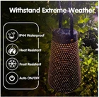 Solar Lanterns Outdoor Hanging 2 Pack, Solar Powered Hollow Out Decor Lanterns Waterproof for Garden, Yard, Patio, Landscape, Metal Decorative LED Light as Gifts for Mom, Women (Black)
