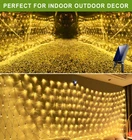 Solar Net Lights Outdoor, 240 LED Warm White Mesh Lights Waterproof, 11.5 ft x 5 ft 8 Modes Green Wire String Lights with Remote for Bushes Trees Patio Garden Shrubs Christmas Decoration Solar Net Lights: Our warm white LED net lights is solar powered, energy-efficient, just put the solar panel under the sun, the battery will be charged by direct sunshine. When it is dark, the net lights will automatically light up 8 Lighting Modes: Variable lighting modes like FADE, JUMP, ASYN FADE, ASYN JUMP, TWINKLE, STROBE, IN WAVES and STEADY ON fit different occasions. Transfer the modes with remote or press the button on the solar panel 3 Timers Modes: You can even control the brightness and set up the time (4 hours on/20 hours off, 6 hours on/18 hours off, 8 hours on/16 hours off) to turn off the net lights outdoor mesh lights regularly Waterproof Outdoor Mesh Lights: IP44 waterproof. Designed with green wire, which can be well hidden in leaves, bushes shrubs or Christmas trees, perfect for outdoor patio, yard, garden, balcony, outside wall, fence, deck decor Connectable Solar Net Lights: The warm white net light could be extended to a maximum of 2 sets. End-to-end connection design increases the coverage of the Christmas net lights. All the Christmas net lights can be controlled and powered by one solar panel Specification: Each led mesh lights is of 240 LED, 11.5 ft(W)*5 ft(H). 16.4 ft extension cord, long enough to connect the outlet, meet your daily usage (Note: Please keep the adapter away from water when using) Widely Application: The outdoor net lights can be easily hung and installed, you can wrap it around bushes, shrubs trees or spread on the lawn, roof. Great light decoration for home, wedding, party, window, Holiday, festival, New Year, Christmas, etc