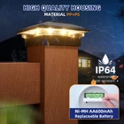 [Applicable Size ]- solar post cap lights measures 5.71x5.71x2.64 inches, comes with screw fittings and different sizes of bases. You can mount the 4x4 post solar lights on 4x4,6x6(actual 3.5x3.5,5.5x5.5) inchs wooden post caps,or you can mount solar fence post lights on 4x4,5x5 (actual 4x4,5x5) inches vinyl post cap. [Warm White/Cool White]- solar deck post lights has two color modes, white light and yellow light. fence post solar lights with 16 led beads is capable of emitting 20 lumens of bright light at the start of dusk, making it perfect for outdoor lighting and garden decor,deck decor,fence decor,patio decor. [Solar Post Lights Outdoor Waterproof 4x4] - solar post cap lights outdoor 4x4 are made of high quality pp plastic, which can resist pressure and water, with a waterproof rating of ip64, sealed well and will not rust, ensuring that the deck post lights can be used for a long time in outdoor waterproof. [Outdoor charging and lighting]-4x4 solar post cap lights can last all night lighting in full charge state. It is recommended that you install the deck post lights solar powered 4x4 in a well-lit location so that vinyl fence solar lights can stay charged efficiently. [Garden/Patiao/Yard/Fence/Deck Decor]-6x6 post cap solar light can be installed on the fence post caps or deck post caps around the front yard, backyard, driveway, sidewalk, walkway, deck or porch.4x4 solar post lights illuminate your garden 360 degrees, decorate your fence, deck, patio, porch or yard.