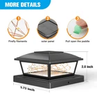 1、Upgraded IP64 waterproof material. 2、Color Temperature: Warm white 3、Equip with 3.5x3.5 wooden post / 4x4 vinyl post / 5x5 vinyl post / 5.5x5.5 wooden post Let your clean and beautiful fence add a little light, let you like your garden more. It can resist heavy rain and other extreme weather! 【Warm white】solar post light is different from before, using a brand new firefly filament lighting mode. Let you experience a different visual feast. Come and give it a try! Make your garden fence, entrance fence, and patio fence more beautiful! This solar powered pillar headlight is unique 【Fit for post size】Our solar deck post cap lights come in various sizes. It is suitable for 4x4 wooden post, 6x6 wooden post, 4x4 vinyl post, 5x5 vinyl post. It can illuminating fences, decks, mailboxes,making them a versatile and stylish addition to any outdoor space.The solar fence post cap light is charged in sunlight for 6-8 hours during the day and automatically turns on for 10-12 hours at night 【Waterproof】Vinyl fence deck post solar lights has been upgraded with IP64 waterproof material, which it can withstand high temperature heat, pouring rain, snowstorm or any other outdoor environments. The deck post caps of these vinyl fence post cap lights protect your posts from rain and sunlight, preventing them from moldy and affecting their appearance. Bring a unique experience to your yard 【IP64 waterproof】Vinyl fence post solar lights have been upgraded with IP64 waterproof material, which it can withstand high temperature heat, pouring rain, snowstorm or any other outdoor environments. These post cap of vinyl fence post cap lights protect your post from rain and sun to prevent premature rotting 【100% Satisfaction Service】We proudly stand behind all of our products 100% and offer a full 2-year service for our outdoor post lighting. This will cover you if the lights stop working or there are any defects within those 2 years.(If you have any question of our products, please feel free to contact our support team)