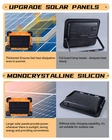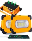 Super Bright LED Work Light: Each 60W LED floodlight has 36 high-quality larger lighter LED lights, bringing you a super high brightness, the night is as bright as the day. LED flood lights be switched between 4 modes by short pressing the power button-High,Medium,Low,Blue & Red Flashing can adapt to any situation. Its compact size (6.69*1.97*5.12 inches) includes magnetic base, and sturdy bracket, providing multiple placement options - handheld, hanging, or desktop Excellent Heat Dissipation & Power Bank Use: Thickened solar panels-ensures fast heat dissipationeven in summer. Upgrade monocrystalline silicon and increased solar panels provide more quick solar charge up tp 20%. In addition to its main function as a work light, this rechargeable work light can also serve as a mobile power source,9000mAh,allowing you to charge other electronic devices while on the go Strong Magnetic Use: Different from 2mm,after 12000 times test, 5mm magnetic base makes it an ideal choice for automotive work,underhood work or any application that requires hands-free lighting. Our magnetic work light's portability and versatility make it very suitable for camping, fishing, maintenance, and more. Tips: Carbon steel is not magnetic,iron and regular steel are magnetic ABS Durable Structure: Our work job site light is made of sturdy glass and ABS material, capable of withstanding harsh outdoor conditions. Its waterproof rating ensures reliable performance, regardless of wind or rain. Perfect for warehouses, garages, gardens, camping, fishing, hiking etc Waterproof: The portable outdoor flood light is sealed with a large amount of waterproof glue, and each light has been tested for waterproofing to ensure that it meets waterproof standards. Allows the lamp to work normally in rain and snow, high temperature or cold environment. Be careful not to expose the plug to rainwater