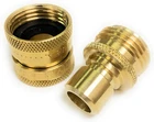 This set of brass industrial strength garden hose quick connectors and nozzle is a must-have for anyone who wants to improve their outdoor garden hose system. Made in the USA, these adapters are of high quality and built to last. The set includes five pieces, making it perfect for connecting and disconnecting garden hoses quickly and easily. Crafted from durable brass, these adapters are designed to withstand the rigors of regular use. They are easy to install and use, and are compatible with a wide range of different garden hoses. Whether you're a professional landscaper or just a DIY enthusiast, this set is sure to be a valuable addition to your tool kit. Set includes 2 Quick connectors x Female Garden Hose , 2 Male Garden Hose Connectors , 1 Jet Sweep Nozzle and 4 Garden Hose Washers