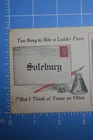 Description: Solebury Bucks County PA Letter Writing Pen Inkwell Scenic View1913 Posted Postcard. Solebury postcard posted in 1913 in Lumberville, PA. Seller notes age and use related wear, along with discoloration. Please see photos for condition and more information. Questions and offers welcome. Please review entire listing (including condition, title, pictures, description, and terms) before committing to purchase this listing. Before agreeing to purchase this listing, make your own determination on condition of the item(s) being offered in this listing. Pictures are part of the description and are provided to help illustrate condition. Since descriptions and opinions of condition can vary, seller provides prospective buyers with the ability to request more information and additional pictures before the close of this listing. When in doubt, please contact Taggart Neveling Books Ephemera, LLC "the seller" through eBay before you bid or agree to purchase this listing. This helps ensure a smooth transaction, one where Taggart Neveling Books Ephemera, LLC gets a sale and the buyer gets the item(s) they want to purchase. Condition & Disclosure of All Faults: All items appearing in this listing are pre-owned and are sold "AS-IS" and "WITH ALL FAULTS." No warranties, express or implied, are made in connection with this listing. Additionally, all other warranties not specifically listed above, are also disclaimed. Since the seller, Taggart Neveling Books Ephemera, LLC, does not provide any warranties with this listing, to the fullest extent allowed by law no sale shall be deemed invalid. A written description and uploaded pictures are offered to help provide a general idea of condition. Pictures are part of the description, but may not show every defect or flaw of an item or collection of items. The written description offered in this listing may not state every single defect or flaw in condition associated with item or items offered in this listing. However, Taggart Neveling Books Ephemera, LLC "the seller" offers potential buyers the ability to submit questions before agreeing to purchase this listing. Buyer agrees that a failure to exercise this option is not sufficient cause to initiate a return. Since Taggart Neveling Books Ephemera, LLC offers potential buyers the ability to submit questions before agreeing to purchase this listing, by bidding or agreeing to purchase this listing, buyer agrees seller has provided sufficient legal disclosure of all defects and faults, even if such defects and faults are not specifically identified in the written description or shown in the uploaded images. All statements and descriptions about age, authenticity, condition, fitness for a particular purpose, or origin of items offered in this listing, as well as those made in response to questions about this listing, reflect the opinion of the seller and are NOT offered as statements of fact. By bidding or agreeing to purchase this listing, the buyer agrees that to the fullest extent allowed by applicable law, Taggart Neveling Books Ephemera, LLC "the seller" will not be liable for any defect, error, or omission in this listing. By bidding or agreeing to purchase this listing buyer agrees to have performed all due diligence beforehand. By bidding or agreeing to purchase this listing buyer agrees all items offered in this listing may require cleaning, conservation, or repair. By bidding or agreeing to purchase this listing, buyer agrees ALL SALES ARE FINAL. NO REFUNDS. NO PARTIAL REFUNDS. NO RETURNS. NO EXCHANGES. Digital Photos and on Screen Viewing: Cameras and computers sometimes display colors differently. Colors, when viewed on a computer screen, can be lighter or darker than the actual item(s) that is being photographed. Please keep this in mind when you place your bid. Please also note: No display props or materials (tape measures, stands, or other items that may be used to help display a listing) are included. Taggart Neveling Books Ephemera, LLC welcomes questions, but asks all potential buyers to submit questions at least one day before the close of this listing. This helps ensure there will be enough time to respond to questions before the close of the listing. Payment Policy: Payment is due within two days of the close of a listing. If a listing remains unpaid for three or more days the issue will be reported to eBay. Failure to pay for an item in a timely fashion may result in a buyer being blocked from both current and future listings offered under this user ID. Sales Tax, Use Tax, Other Taxes: Since tax laws vary by state, you may be responsible for remitting sales or use tax to the appropriate state agency. The bidder, by bidding, agrees that if any sales or use tax (or any other tax) is due on the item(s) purchased, it is to be paid and remitted to the appropriate agency by the buyer and not the seller. Please note that eBay has largely automated this process. However, if there is any error in eBay's collection or the calculation of tax due, the buyer agrees, to the fullest extent allowed by law, to pay the correct amount to the appropriate agency and to not hold the seller responsible for covering any additional amount of tax due. Shipping Policy: Shipping Cost for this listing (Within Continental US): Item will ship for $4.95, with tracking, to continental US. Please note: No in-person pickups or deliveries are offered with this listing. Delivery for this listing will only be made via USPS mail. In listings without free shipping offered, total shipping cost includes all aspects of shipping, such as packing materials, time to pack the listing(s), time and expense incurred to get the listing(s) to the post office, and lastly postage. Postage is just one aspect of shipping cost. Please keep this in mind if you happen to see an instance where the shipping cost charged was higher than the postage cost. Time to Ship: All orders will ship within five business days. This means your order will sh