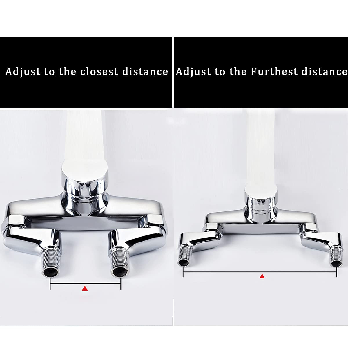 【Material】: Solid Brass Faucet adjustable swing arms. S-shaped structure can adjust the hot and cold water pipe and faucet, convenient and adapt to the installation. 【Features】: Brass body construction ensuring quality and longevity. Can be used for shower faucet or any hole faucet. 【Durable design】: Arms distance adjustable to suit difference installation scenario. 1/2"Male × 1/2"Male thread. 【Functions】: Distance of installation hole can be adjustable between 2.75 inch to 9.25 inch. economy saving space. 【Easy installation】: Wall mounted, precise screw thread, easy to install.
