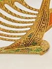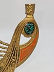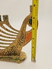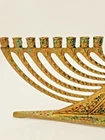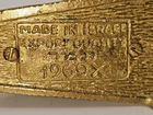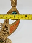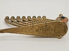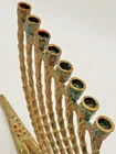 This vintage Solid Brass Hen Holon Israel Star of David Menorah from 1969 is a handcrafted piece from Israel, standing at 9 inches tall and 8 inches wide. It features the Star of David and is signed as "Made in Isreal For Export". The menorah is a symbol of the Jewish faith and tradition, making it a significant item for Hanukkah celebrations. Made of solid brass,enamel inlays and a prescius stone this unique and collectible piece showcases the craftsmanship and artistry of Judaica from Israel.