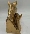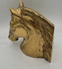 Add a touch of elegance to your living space with this solid brass horse and pony statue sculpture. Crafted with intricate details, this vintage metal equestrian bookend is perfect for table decor. Measuring approximately 5.5'' x 3.0'' x 5.5'' inches, this sculpture weighs over 4 1/2 pounds. The sculpture is made of solid brass and features a beautiful horse with pony design that adds a touch of charm to any room. This collectible item is perfect for horse lovers and is a great addition to any collection.