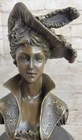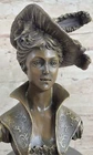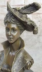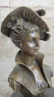 Condition : This sculpture is in perfect condition. Bronze Dimensions with Marble Base: Height 9" X Width 5" Marble size: Diameter 3 1/2" Height without base:7" Weight:5 LBS Inventory:76-DS4063367 This exquisite bronze bust captures the elegance and charm of a young woman from the 1900s, embodying the refined fashion and sophistication of the era. Her graceful features, from her delicately sculpted face to her intricately styled hair, evoke the beauty and poise of a porcelain doll. Topping off her look is a gorgeous, wide-brimmed hat, adding an air of timeless elegance. She is dressed in a high-collared blazer that complements her form-fitting corset, accentuating the fashionable silhouette of the time. The careful attention to textile details and drapery brings the sculpture to life, making it a captivating tribute to vintage style. The warm brown patina finish enhances the depth and realism of the piece, ensuring its preservation and lasting beauty. Handcrafted using the ancient lost wax method, this 100% bronze sculpture stands as a testament to traditional artistry and fine craftsmanship. Mounted on a sleek black marble base, it provides a striking display of contrast and refinement. Signed by the renowned artist Milo, this stunning bust is a perfect addition to any collection, celebrating the grace and sophistication of a bygone era. Edwardian Era Fashion Bronze Metal Bust of Young Woman in Feathered Hat DS-406 Video will open in a new window Using the eBay App? Paste link into a browser window: [isdntekvideo]
