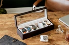 Give your watches a home they deserve with this SOLID, SLEEK watch box. Our refreshing design carefully incorporates deep ridges, straight lines, and a REAL GLASS display. ✅ We’ve simplified closing your watch box with our timepiece safe MAGNETIC ENCLOSURE, ensuring the lid stays tightly locked in place. ✅ Our ultra soft watch pillows have been designed to fit most sizes and styles of watches, including large faced watches, watches with small bands, and various other styles of men's and women's watches. ✅ The finely tuned espresso color is slightly glossed and paired with a black felt bottom that prevents any furniture surface scratching. ✅ With six slots to fill, you now have the perfect reason to go searching for your new timepiece.