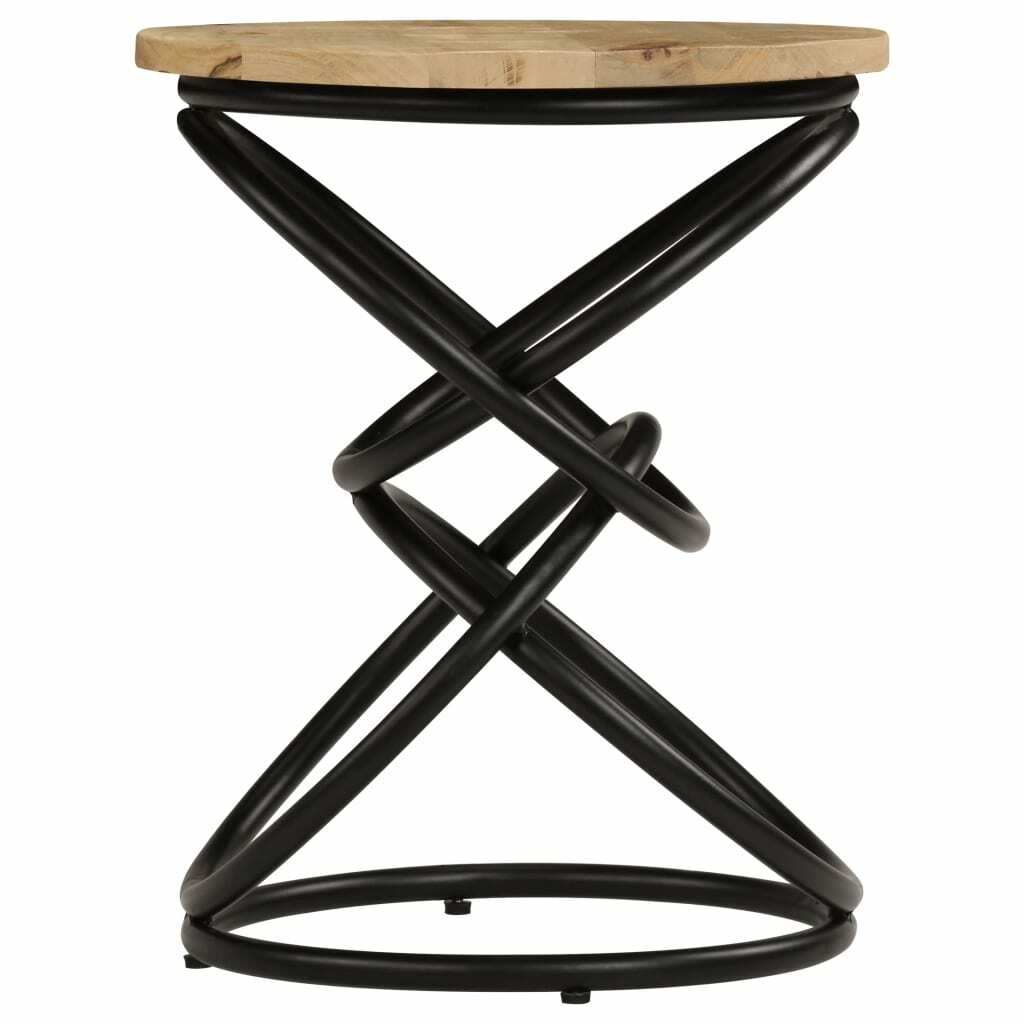 This antique-style wooden end table will make a captivating addition to your room. The table's solid mango wood top and iron frame enable it considerably stable and secure to place drinks, fruit baskets, decorative items, etc. This vintage end table can also be used as a side table, a couch table, a living room table, coffee table, etc. Made of mango wood, the table is solid, durable as well as nice-looking. Every piece of this furniture is peculiar, and slightly different from the next. Signs of wear and visible grain structure give each piece its own history and a distinctive look. This coffee table is fully handmade. Every step of the process is carried out with the greatest care, be it polishing or lacquering. Please note: Colors vary from piece to piece, making each of our end tables unique. The delivery is random, ensuring the exclusivity and individuality of your product. Color: Brown and black Material: Solid mango wood top + powder-coated iron legs Dimensions: 15.7" x 19.7" (Diameter x H) Fully handmade Polished and lacquered California Proposition 65 Warning: Cancer and Reproductive Harm – . Shipping Restrictions Due to the limited access of our couriers, this item cannot be delivered to the following locations: Alaska Federated States of Micronesia Guam Hawaii Marshall Islands Military Posts (APO / FPO) Palau Puerto Rico US PO BOX Virgin Islands Our customer support will contact buyers for orders with no shipment service, and these orders will be cancelled and fully refunded afterwards.